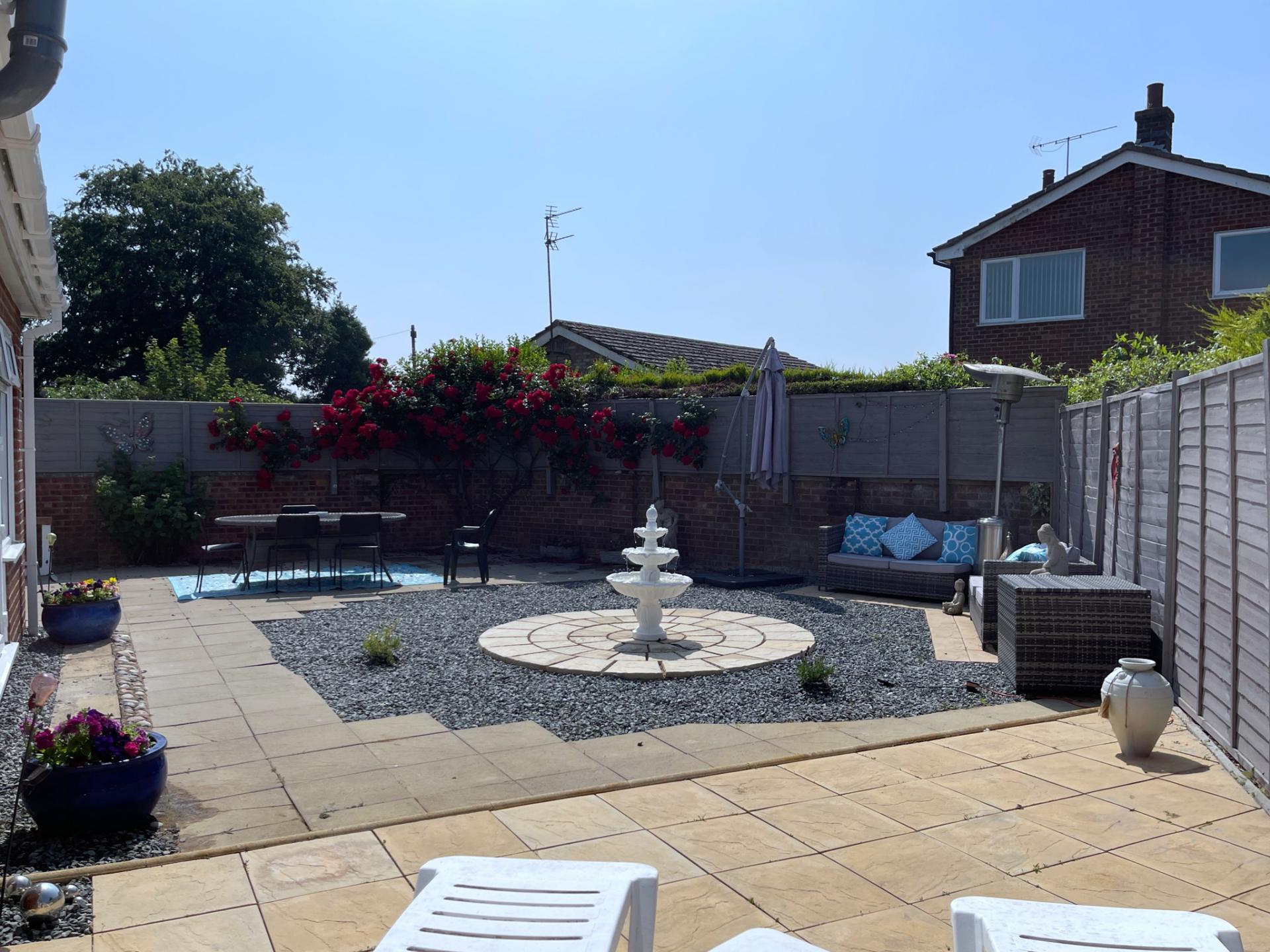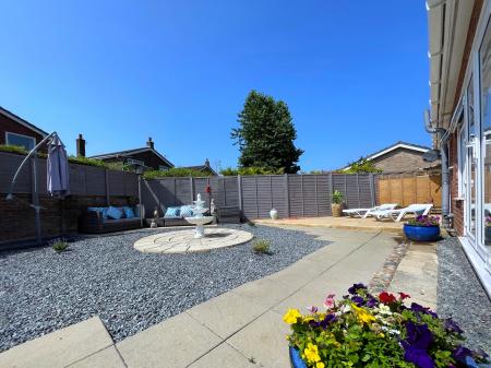 Paved pathways to the side elevation leading into the rear garden, mainly laid to lawn with a wide range of mature shrub and tree borders, with outdoor tap, leading onto the side garden which has extensive flagstone patio area, further central flagstone oval patio area, raised patio with further gravelled area, south facing with brick walling to the side and rear elevations with further fencing, built in BBQ.