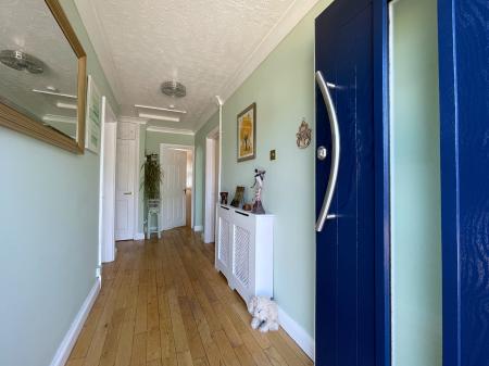 INNER LOBBY 3' 2" x 9' 4" (0.99m x 2.87m) With skimmed and coved ceiling with centre sensory light, solid oak flooring, solid oak glazed door off leading into: