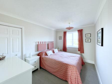 MASTER BEDROOM 15' 9" x 15' 4" (4.81m x 4.69m) UPVC double glazed window to the front elevation, coved and textured ceiling, 2 centre light points, radiator, TV point, fitted furniture comprising 5 double wardrobes. Door into: