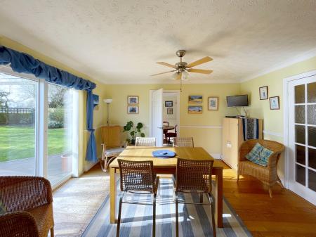 BREAKFAST ROOM/RECEPTION ROOM 2 11' 10" x 13' 5" (3.63m x 4.09m) UPVC double glazed sliding patio doors to the rear elevation, coved and textured ceiling, centre light point, double radiator, engineered oak flooring, TV point, double obscured doors leading into Lounge. Further door leading into: