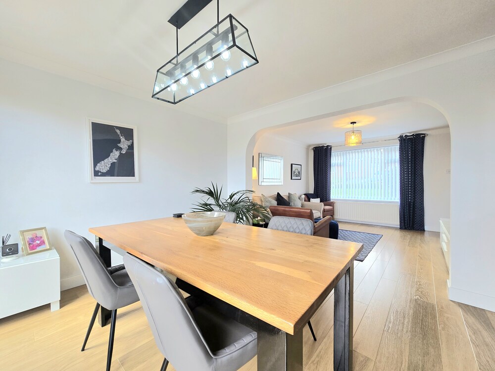 From the multi-car driveway and the porch entrance for a spacious hallway leading to the reception areas consisting of the sumptuous living room with a separate dining area, and the large open-plan and modern kitchen for access to the attached utility housing the combi boiler and domestic appliances, with a very handy downstairs toilet/washroom also available and solid flooring throughout.