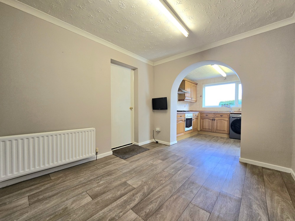 Briefly comprises of a spacious hallway for the expansive living room with bay window, a separate dining area with access to the garage, and a decorative arch to the kitchen. Two double bedrooms, one with fitted wardrobes, and the modern panelled bathroom has a large walk-in shower.