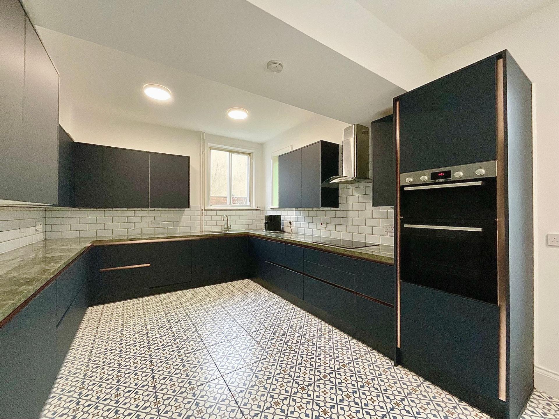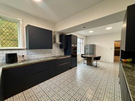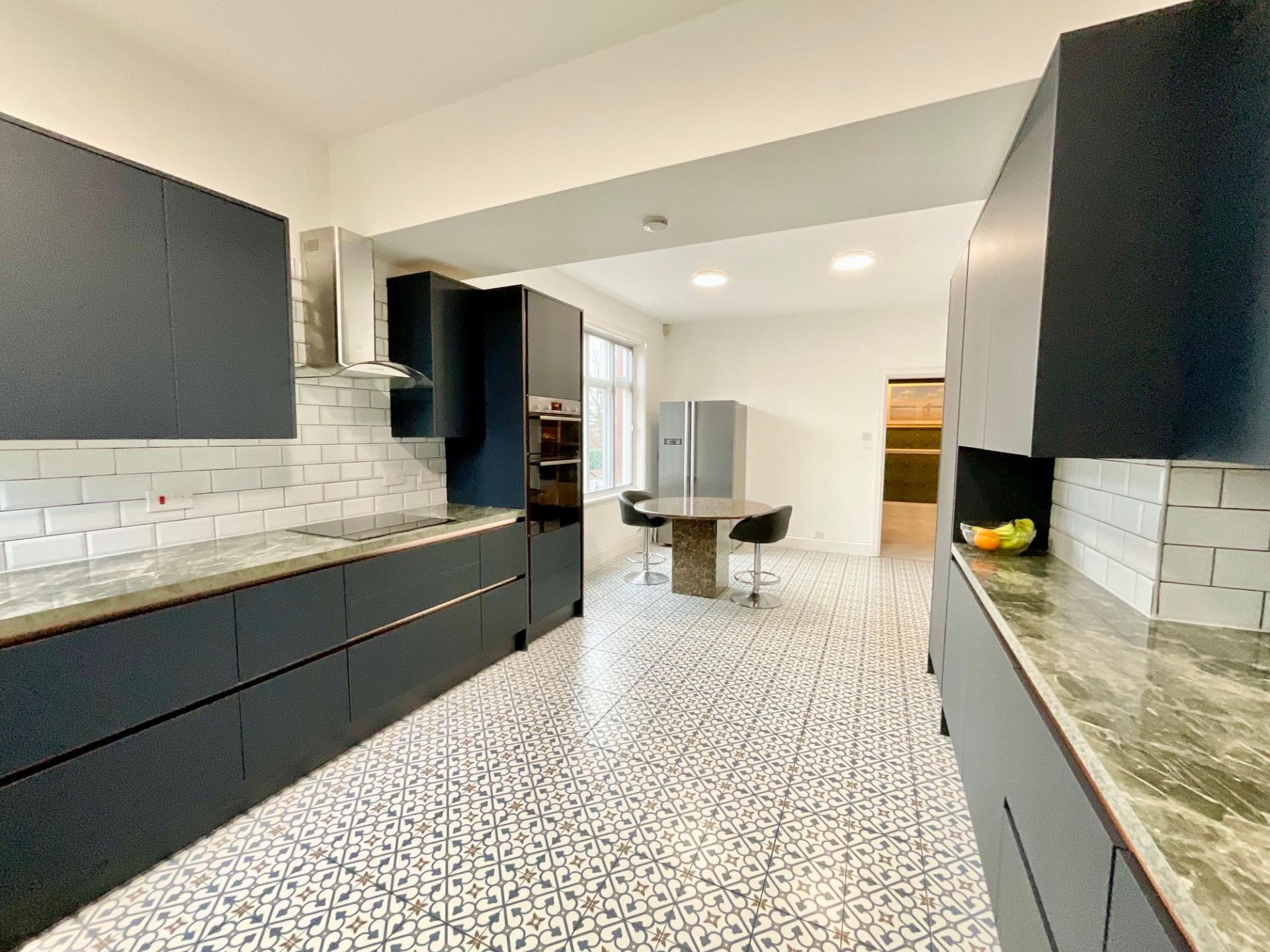 - Luxurious modern upgrades, including a contemporary deep-blue kitchen with premium Bosch appliances and a stylish utility room.