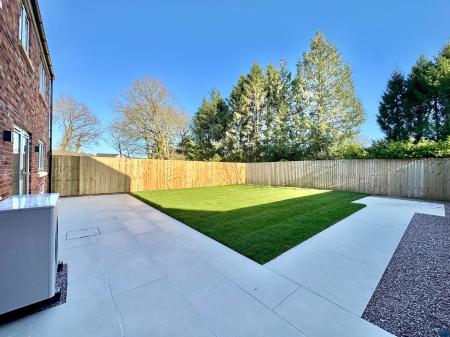 - South facing garden with GARDEN SHED, BIN STORE, EV CHARGER, and exterior lighting