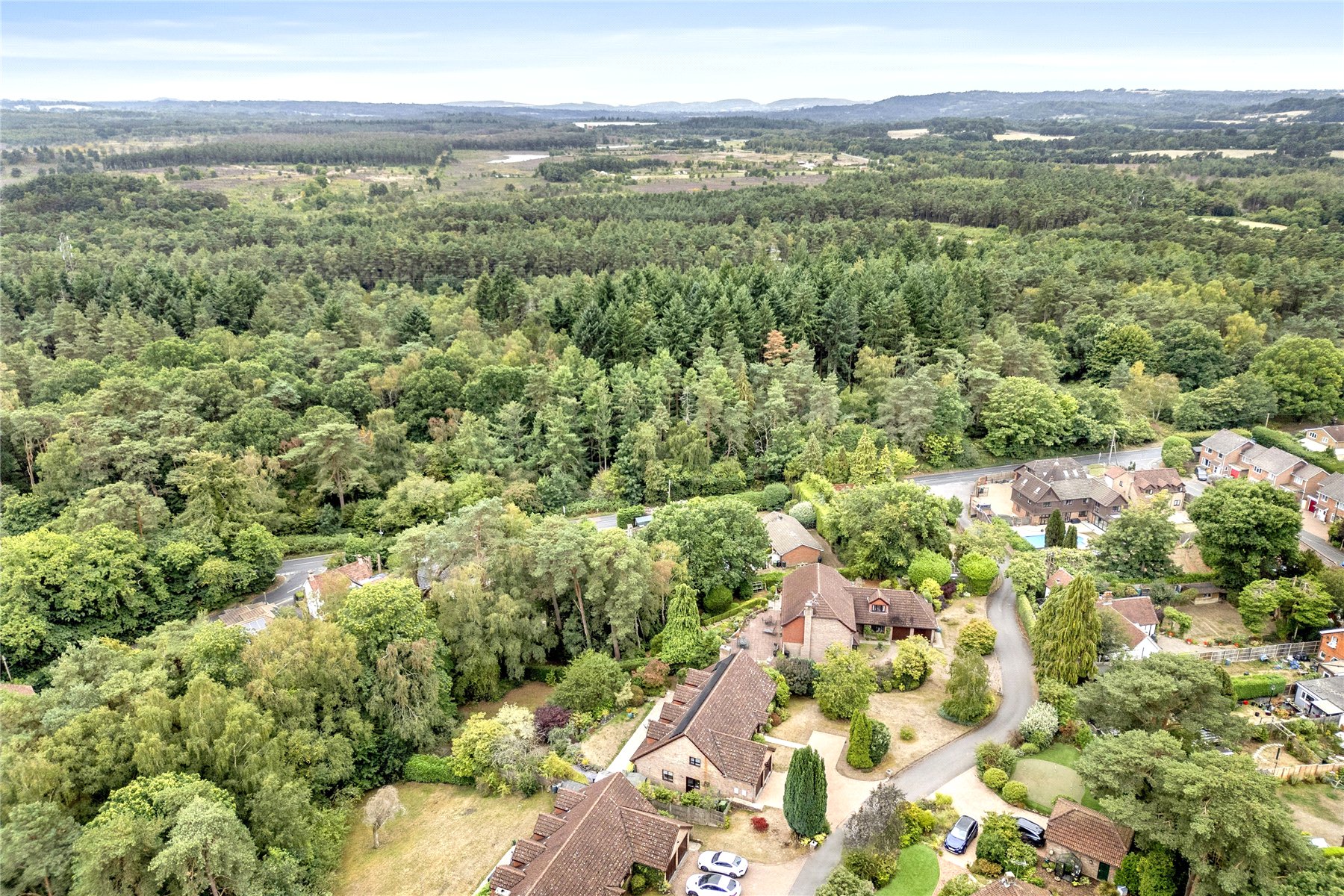 Situated in a small, quiet cul de sac of 5 prestigious homes, with elevated views to the rear over woodland, whilst being only a moment or two's walk from woodland within Woolmer Forest on South Downs National Park.