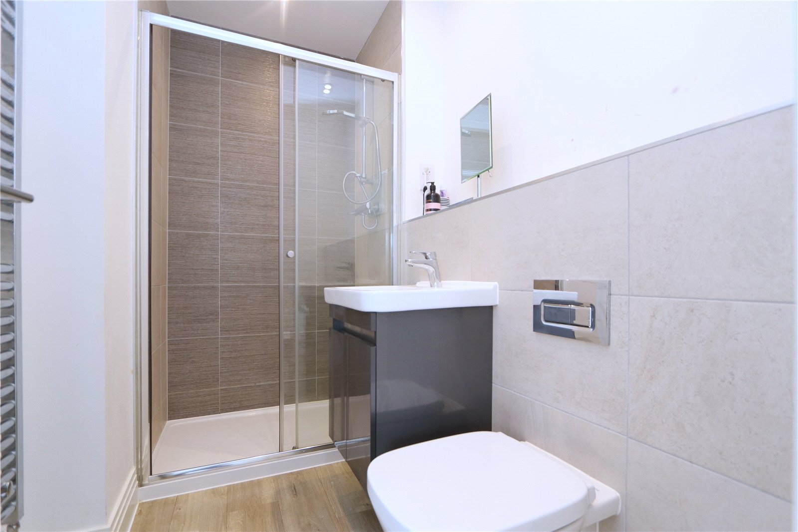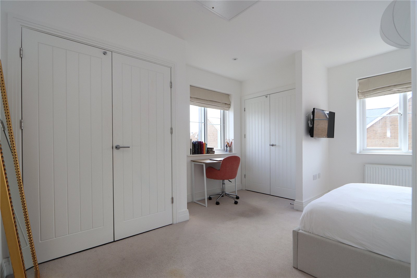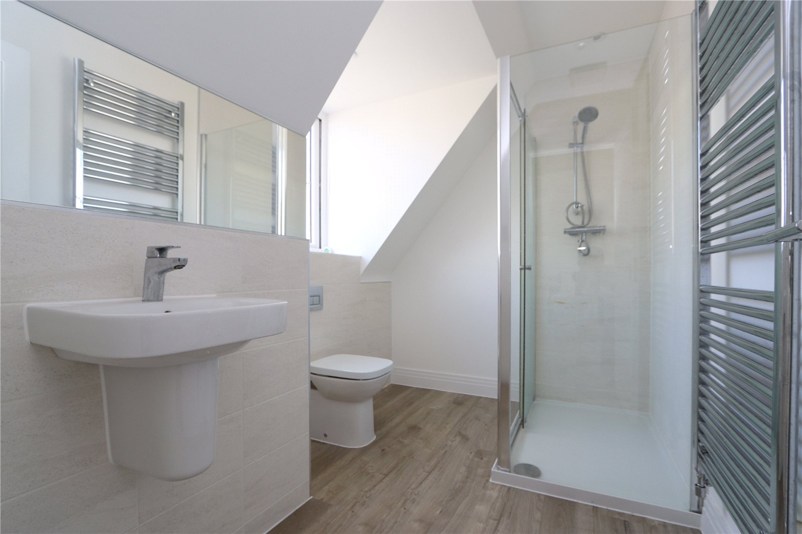 The first floor provides access to: the master bedroom which has an en suite shower room and two built-in wardrobes - three further bedrooms and a modern, tiled family bathroom. The second floor offers a further double bedroom with built in wardrobes and an additional en-suite.