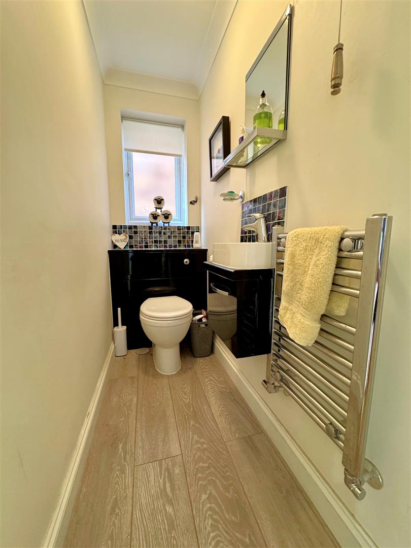 Downstairs cloakroom comprising two piece contemporary suite