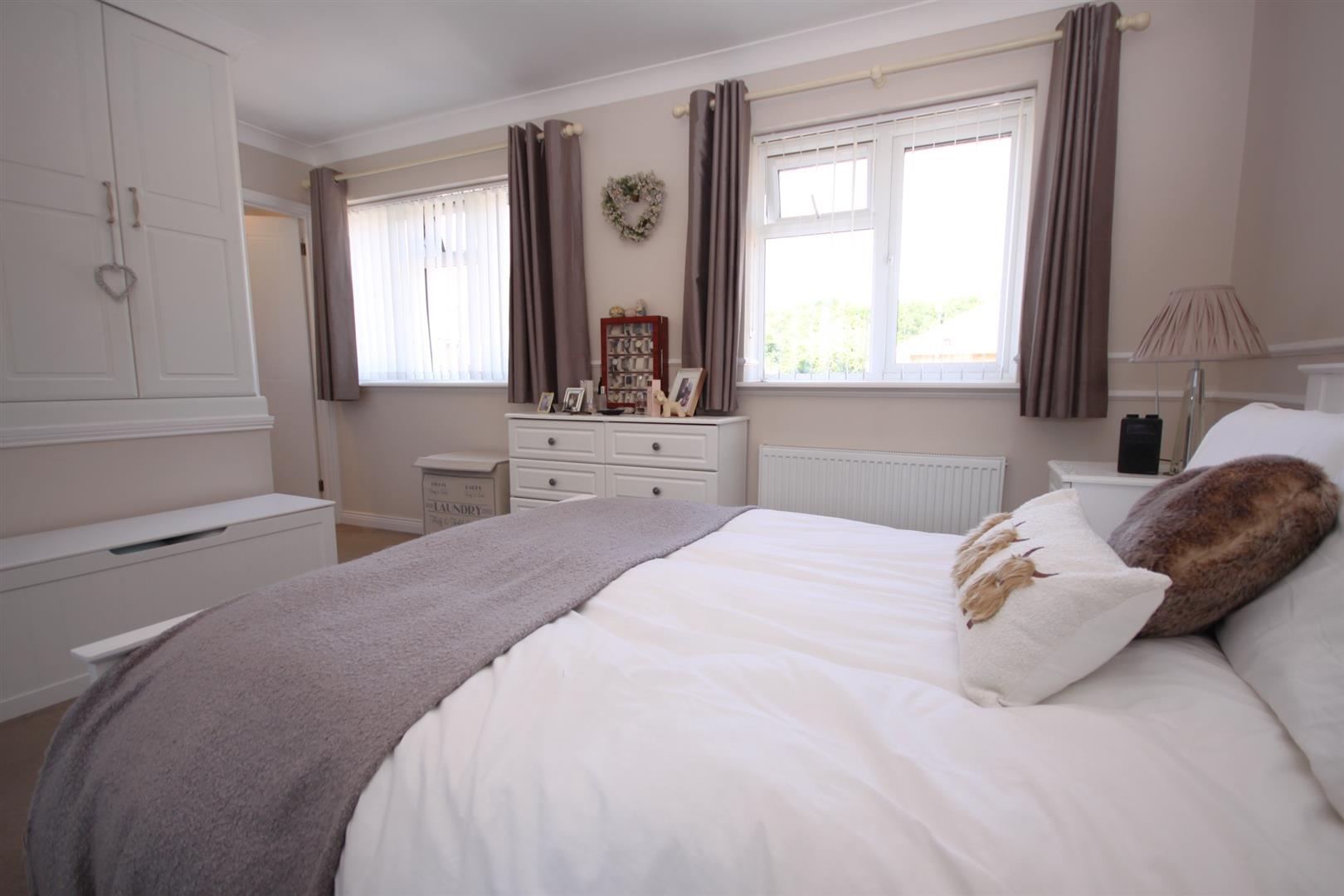 Main bedroom to the first floor enjoying built in wardrobes, twin windows & en-suite bathroom