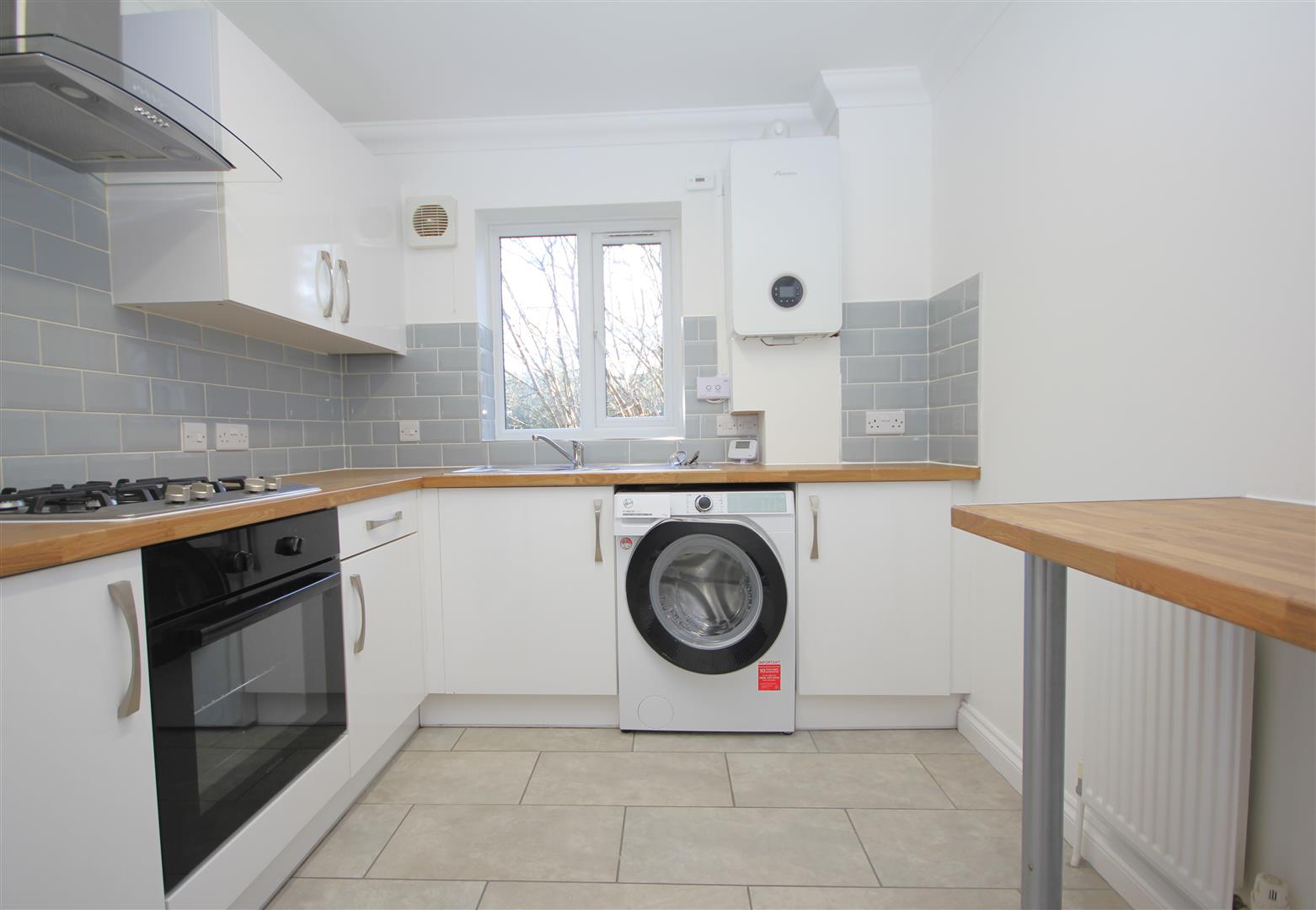 Integrated appliances include oven, hob & fridge/freezer with space for washing machine