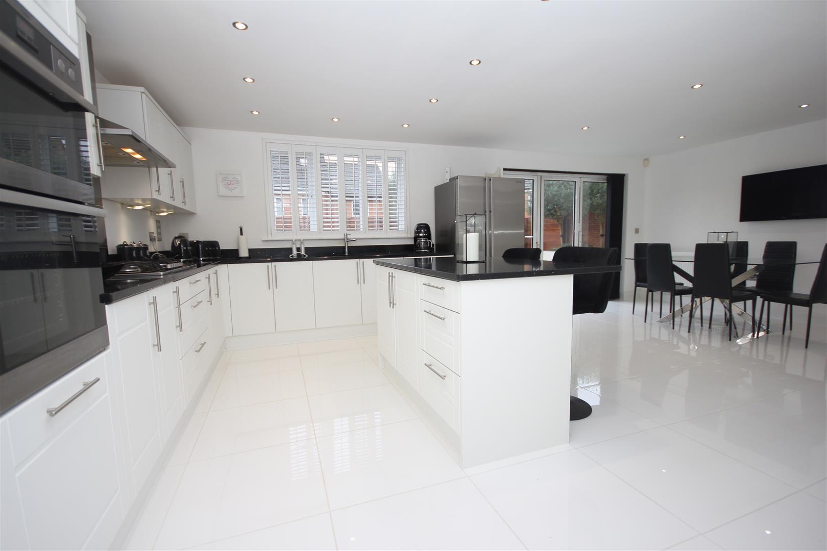 Integrated appliances include double oven, hob, microwave & dishwasher with space for American style fridge/freezer