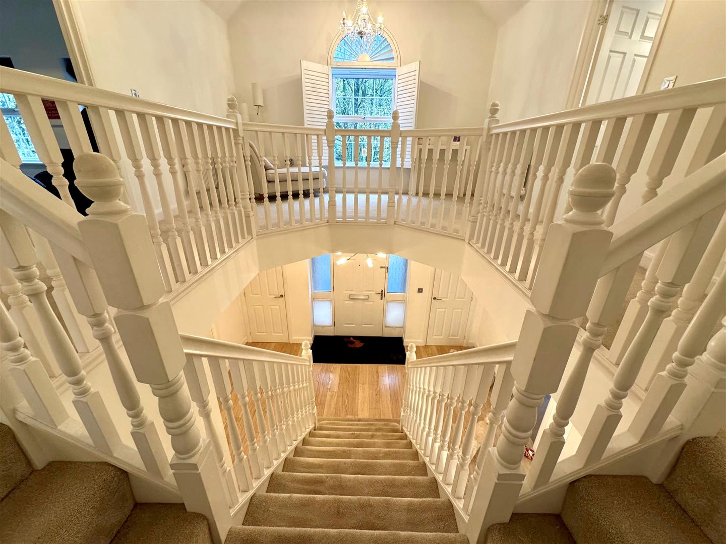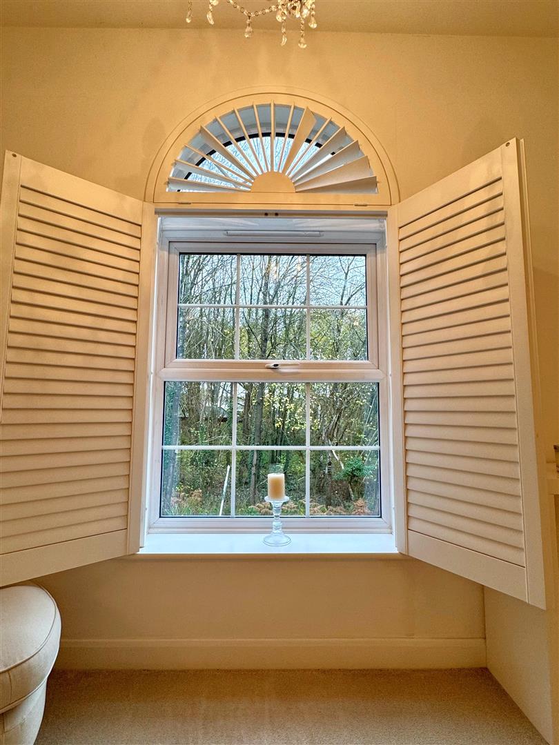 Wonderfully light & airy galleried landing with feature arched central window enjoying bespoke made to measure shutters to remain