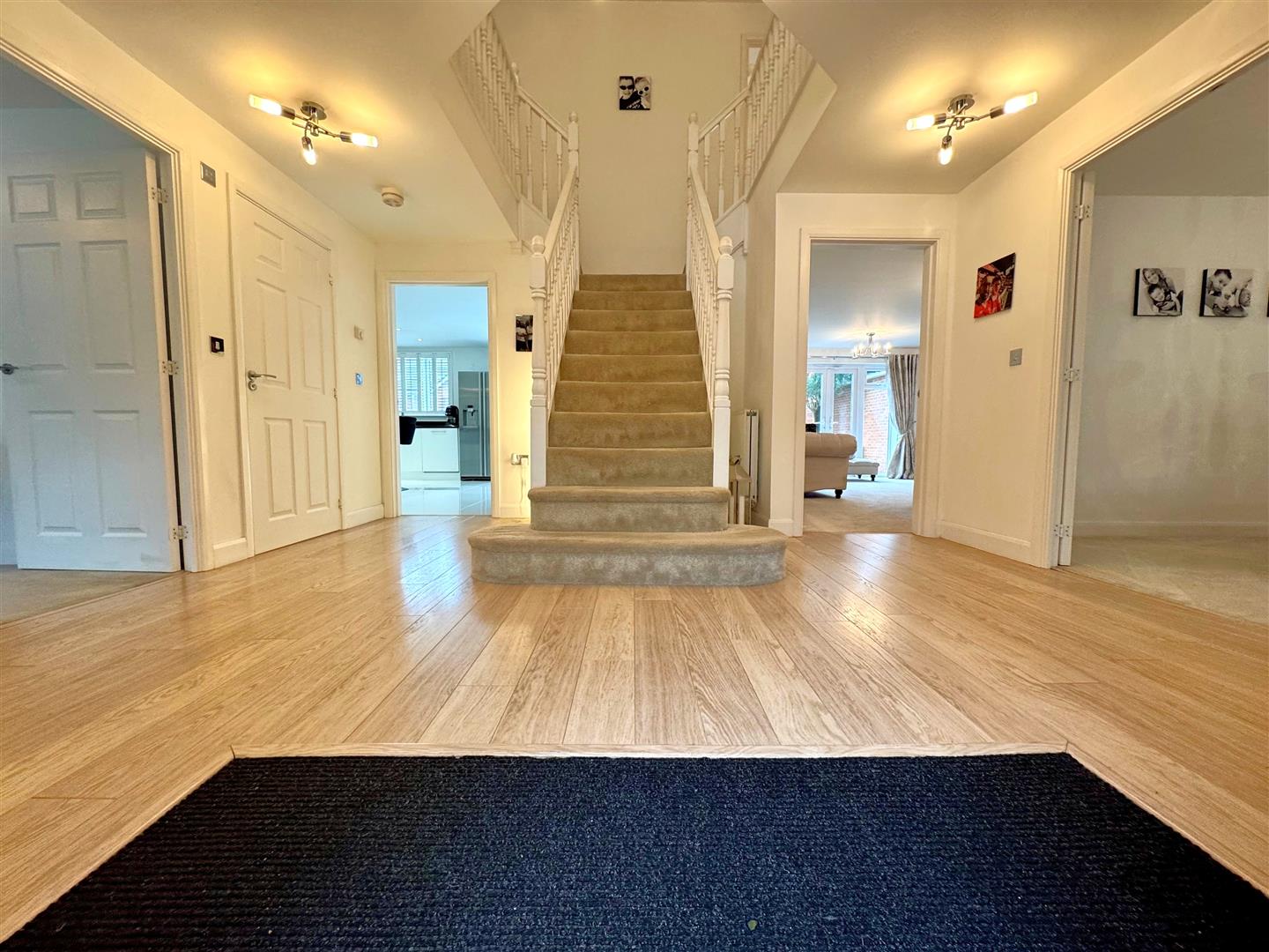 W&W are extremely delighted to offer for sale this beautifully presented detached family home situated down a private road enjoying picturesque woodland views. The property has been meticulously maintained and improved. Formally a 5 bedroom home, the current owners have converted bedroom 5 into an impressive dressing room. Internally the property boasts over 2000 sq.ft providing four double bedrooms, three reception rooms, 22'7ft kitchen/breakfast room, utility room, cloakroom, modern main bathroom & two modern en-suites. Outside, the property enjoys a professionally landscaped rear garden, detached double garage & driveway parking for up to 4 vehicles.