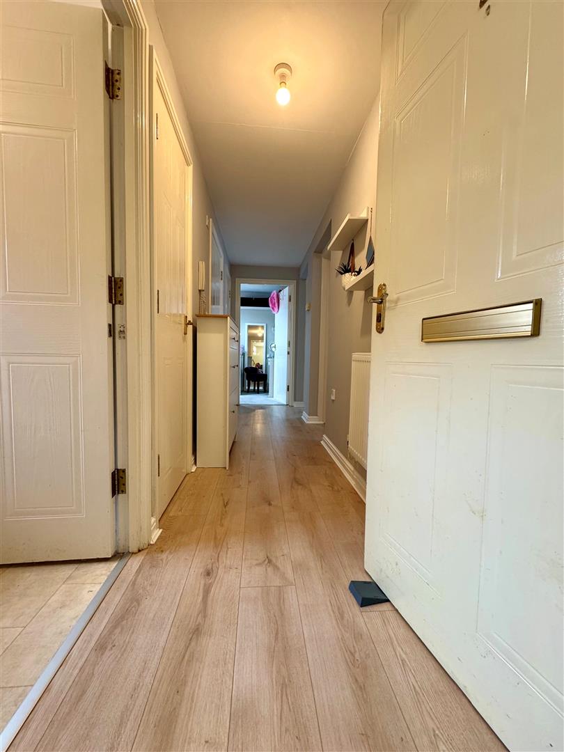 Welcoming entrance hall enjoying attractive wood effect flooring flowing into the lounge/dining room