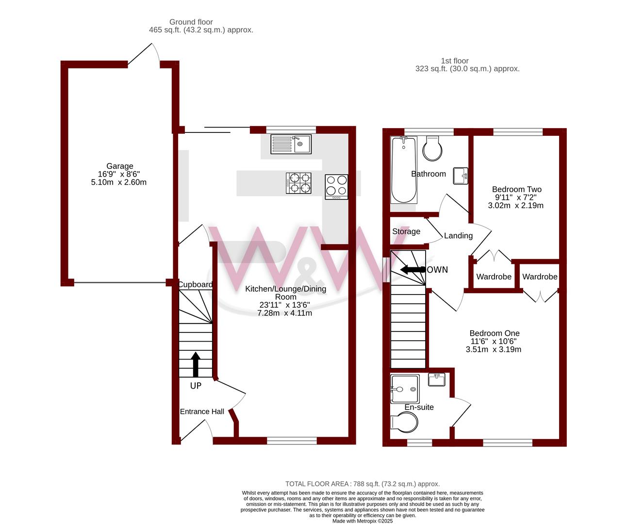 W&W are delighted to offer for sale this well presented two bedroom end of terrace house. The property boasts a reconfigured ground floor layout now enjoying an open plan kitchen/living/dining room, two bedrooms, family bathroom & stunning 2021 modern re-fitted en-suite shower room to the master bedroom. The property also benefits from a rear enclosed landscaped garden, garage & driveway parking.