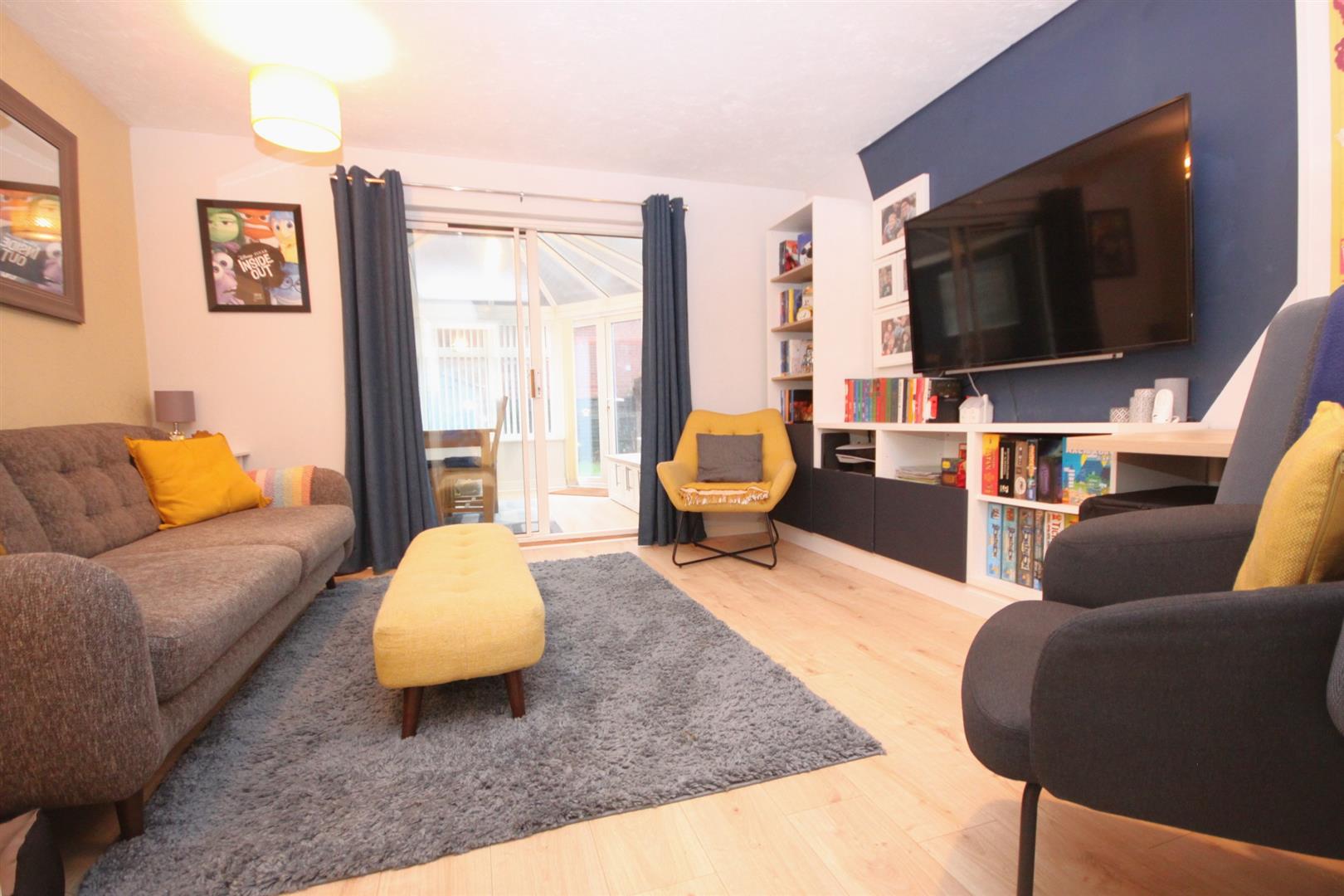 Spacious lounge boasting built in storage & patio doors opening into the conservatory