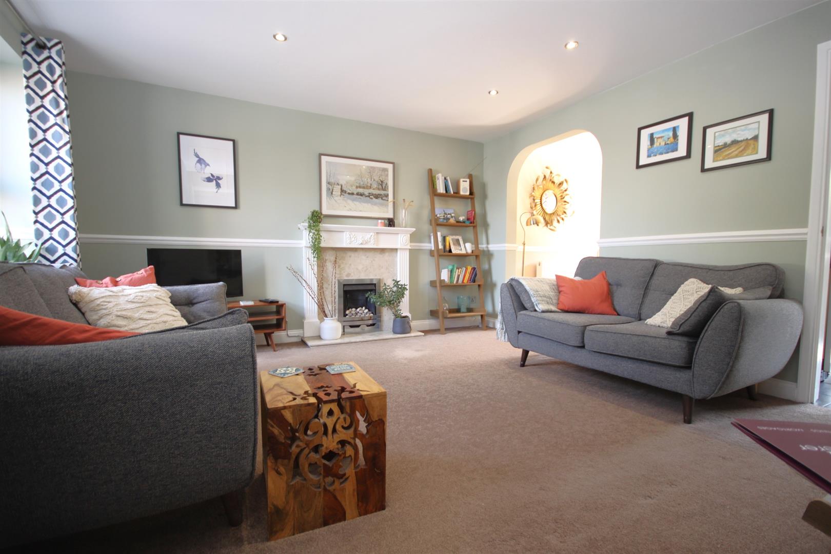 Spacious lounge enjoying built in understairs storage cupboard & centrepiece fireplace
