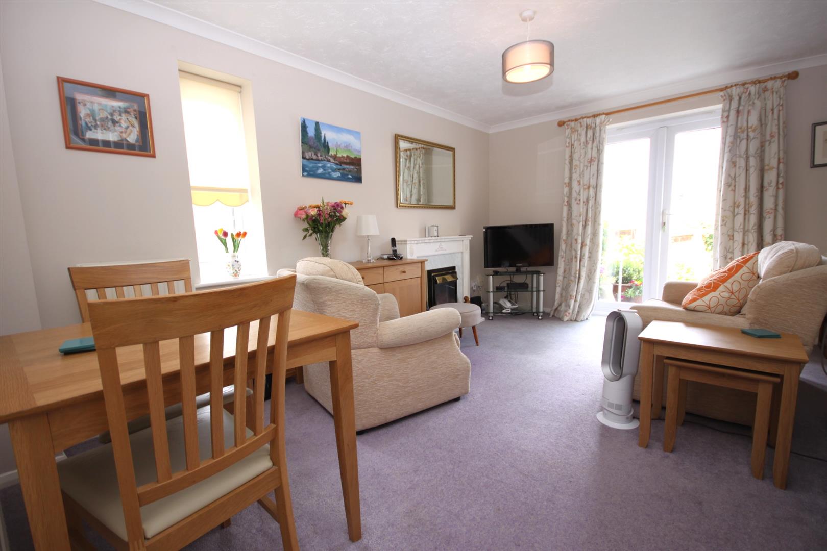 Dual aspect lounge with centrepiece fireplace & double doors opening out into the rear garden