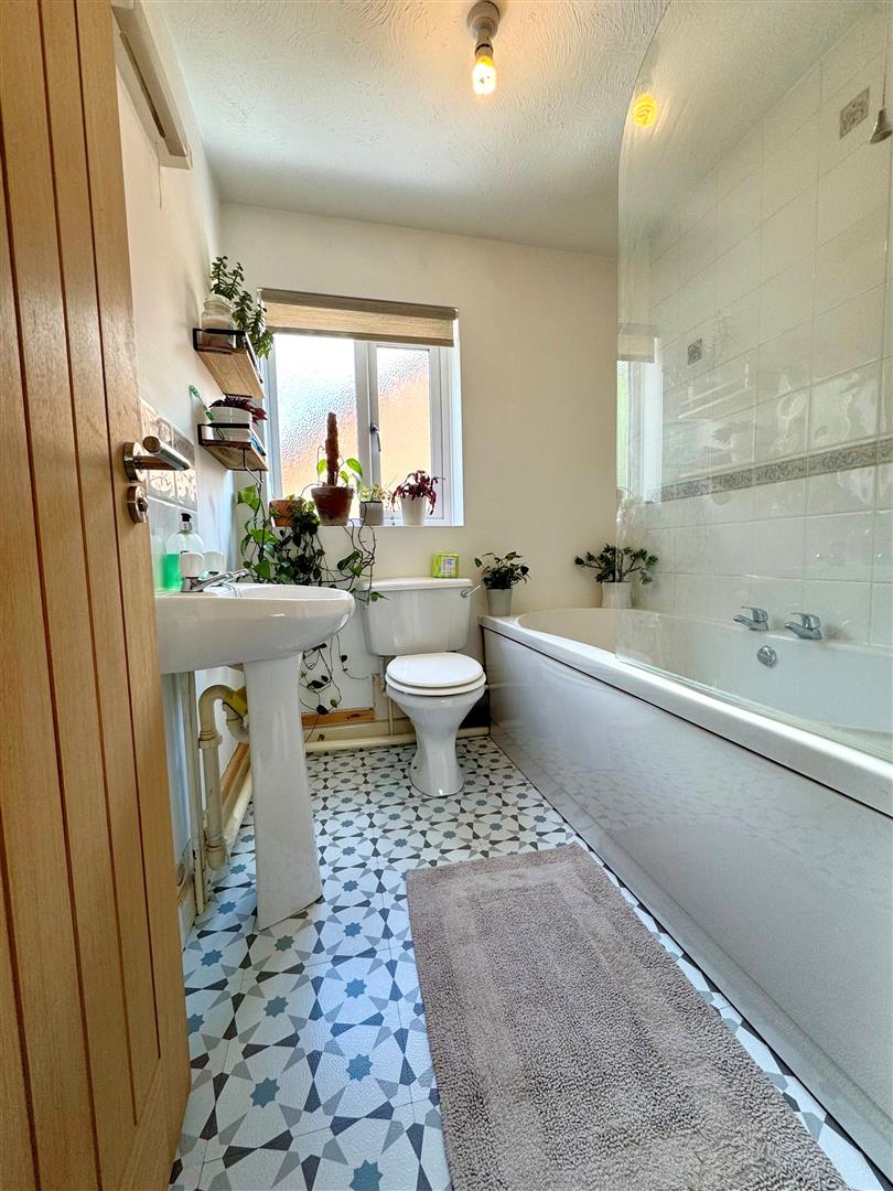 Main bathroom comprising three piece white suite