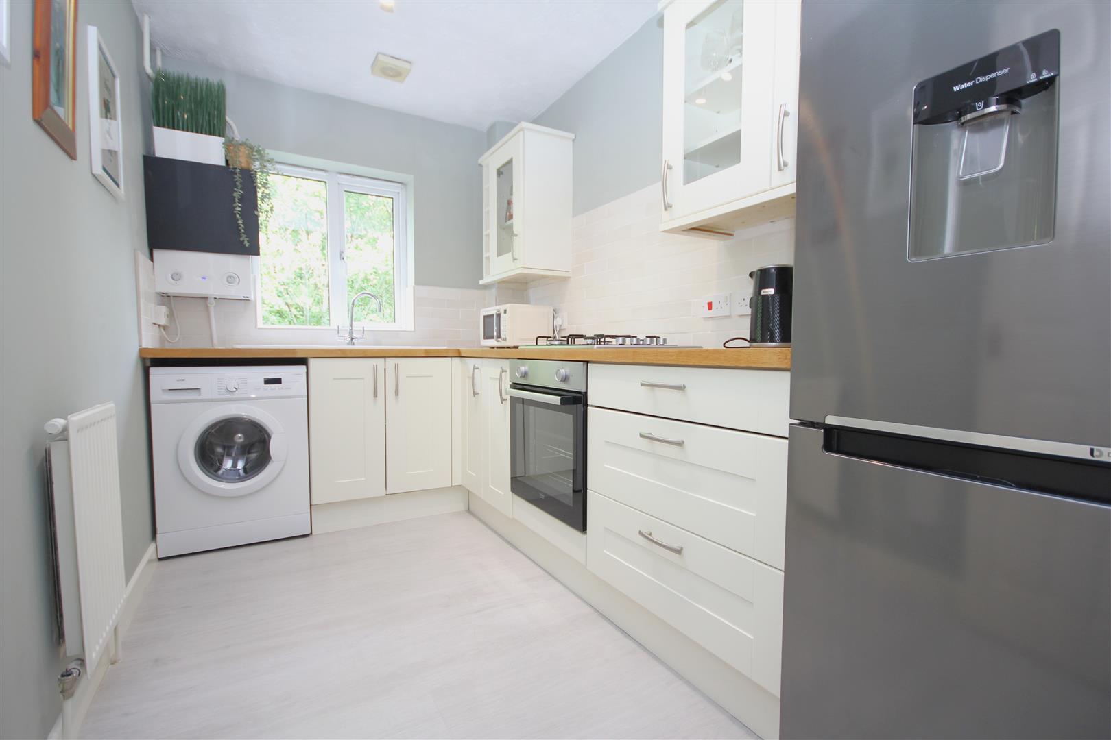 Modern re-fitted kitchen enjoying 'butchers block' effect work surfaces, integrated oven/hob with space for additional appliances
