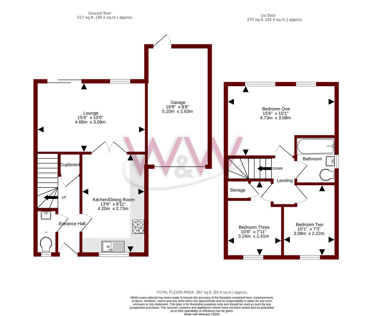Two additional bedrooms with one benefitting from built in storage