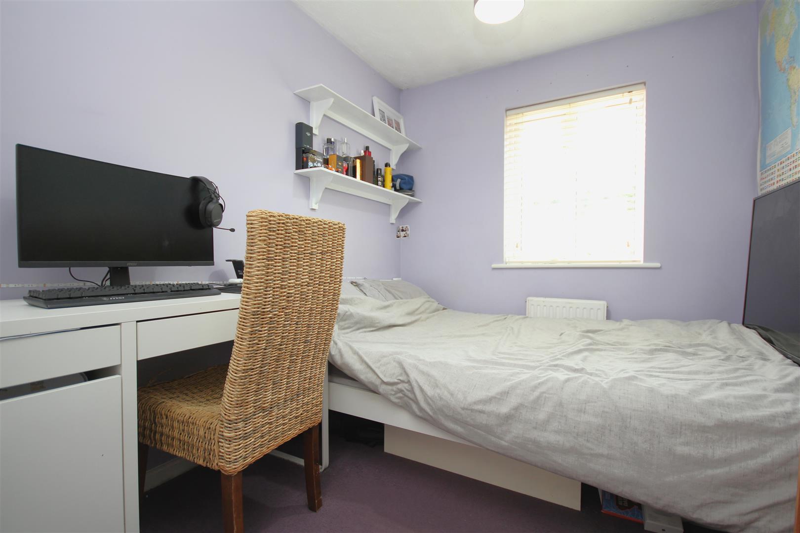Main bedroom with twin windows to the rear