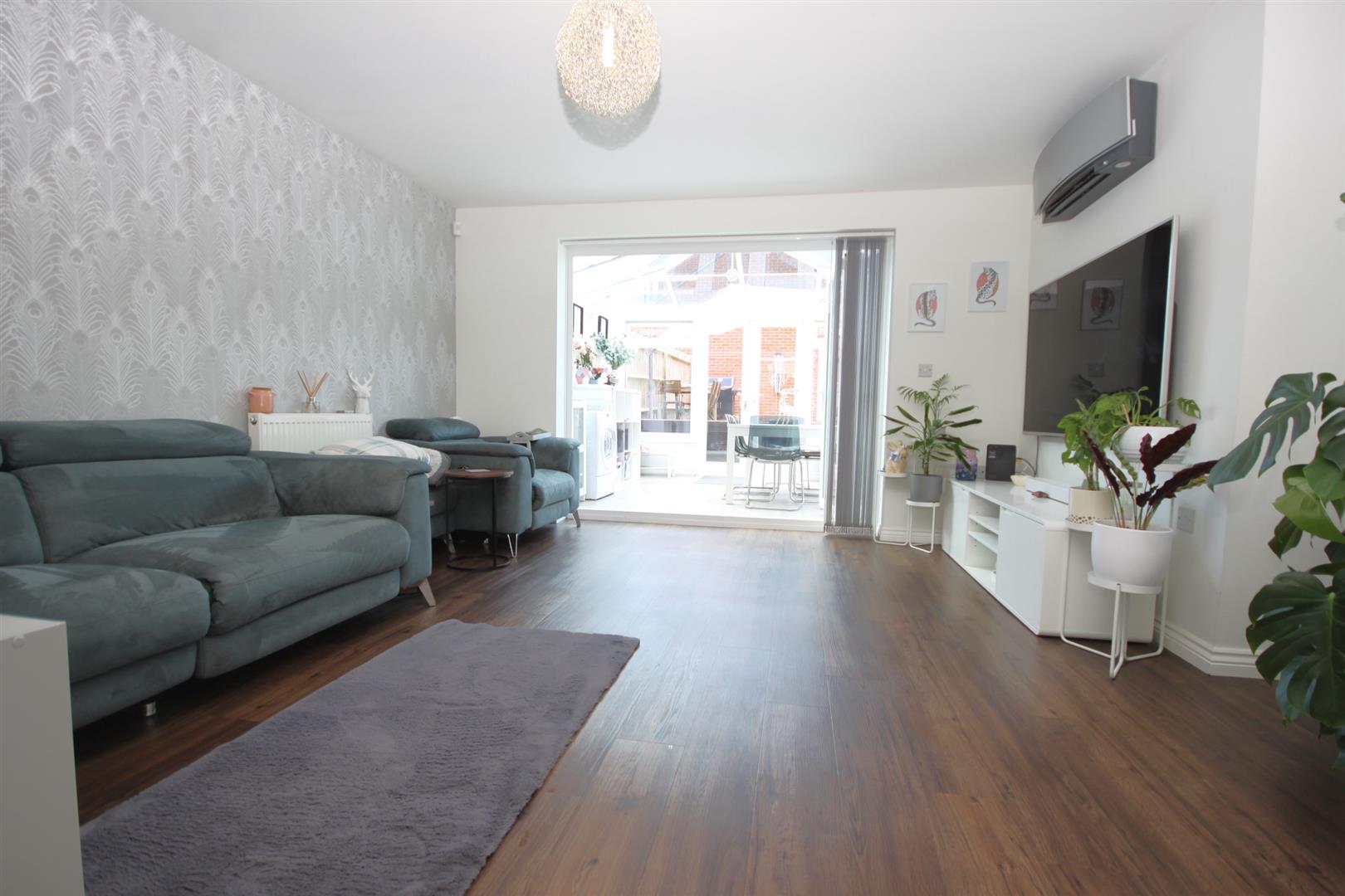 Welcoming entrance hall enjoying attractive wood effect laminate flooring flowing into the lounge/dining room