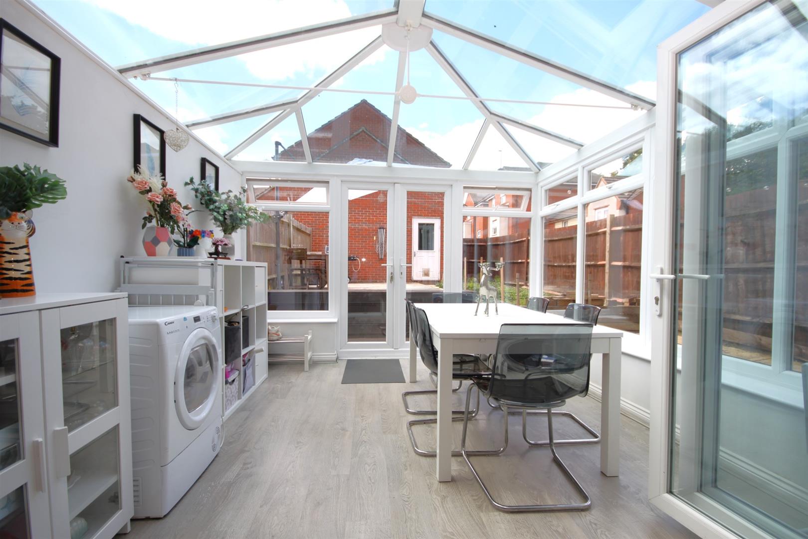 Conservatory with vaulted glass roof & double doors opening out into the rear garden