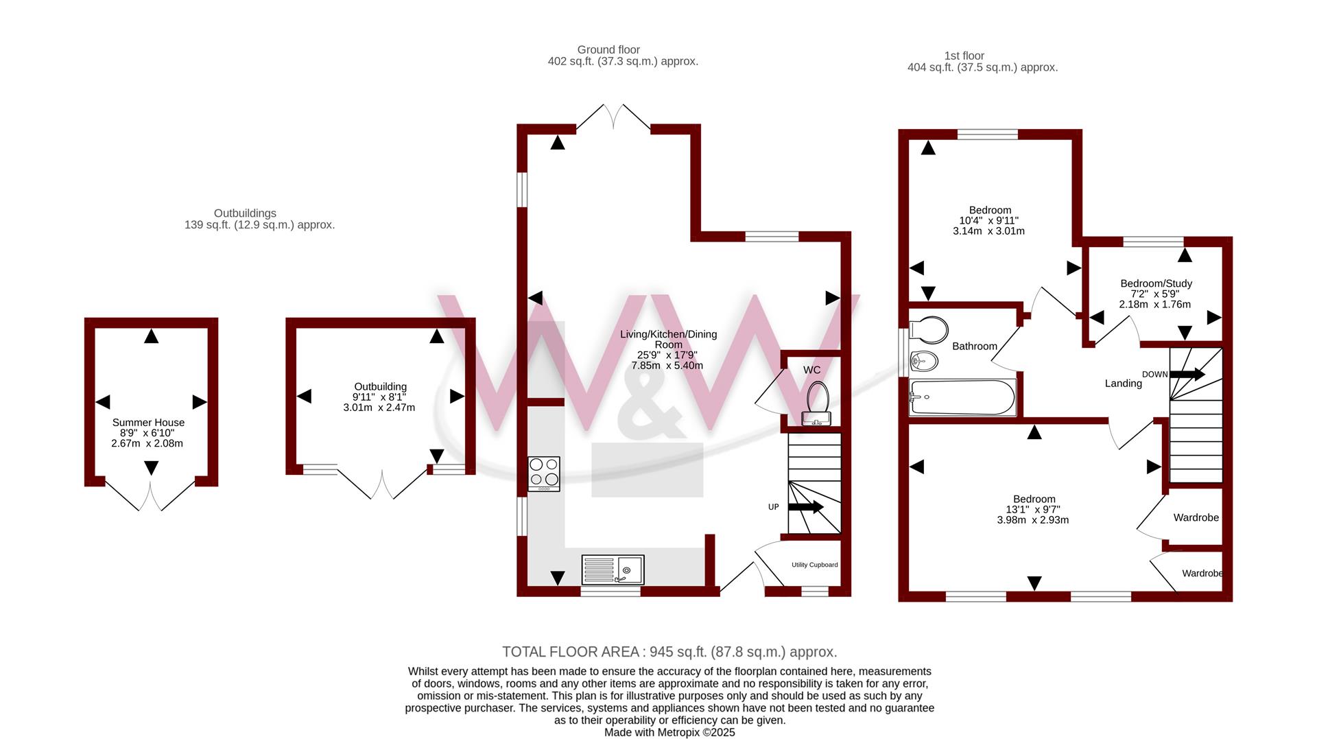 Fully insulated outbuilding with power & lighting to remain, summer house also to remain