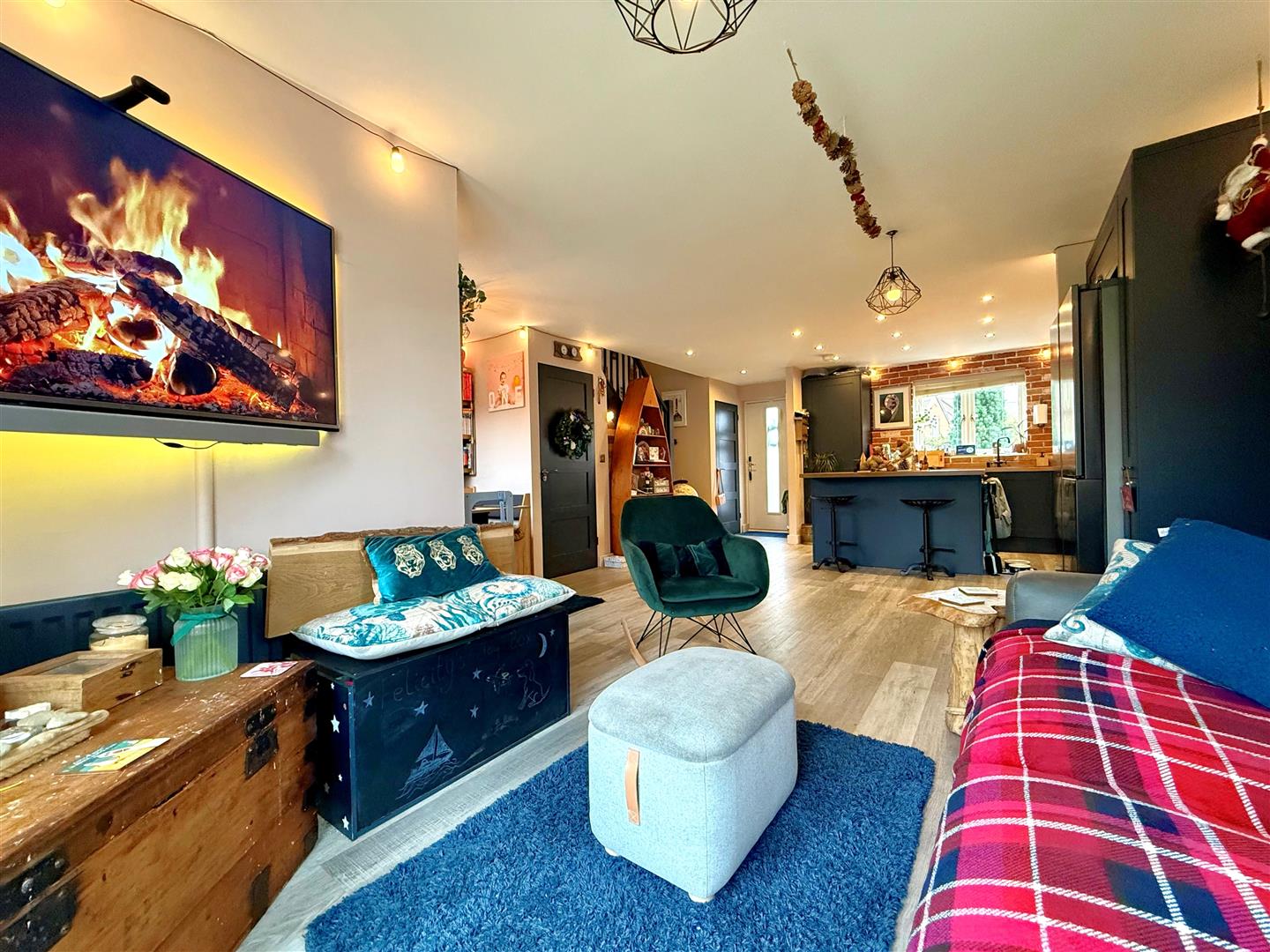 Impressive open plan 25'9ft triple aspect kitchen/living/dining room with double doors opening out to the rear garden