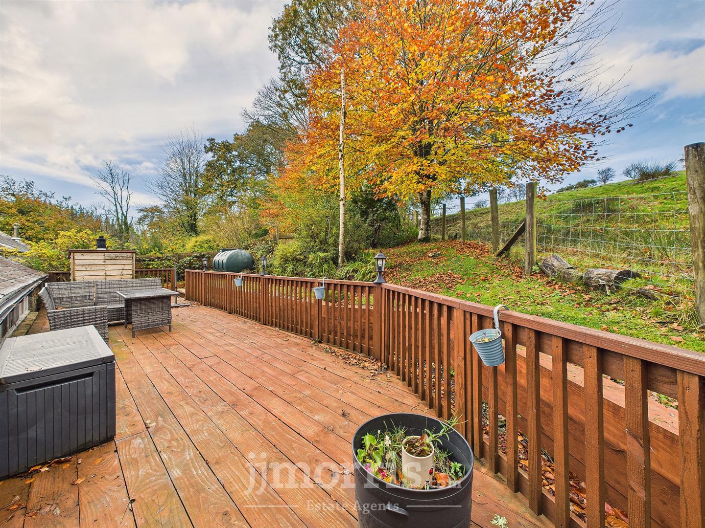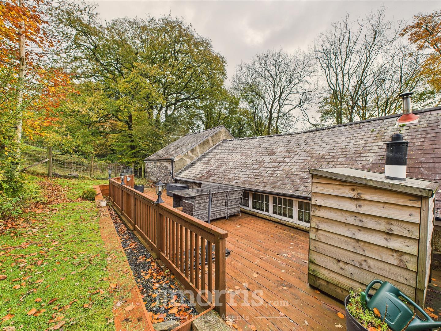 Externally - The property is approached via a very good stone track to the handful of houses in this little hamlet There is ample off road parking for two/three cars, two wooden sheds. To the rear is a large decked area together with lawned gardens with an open outlook over farmland