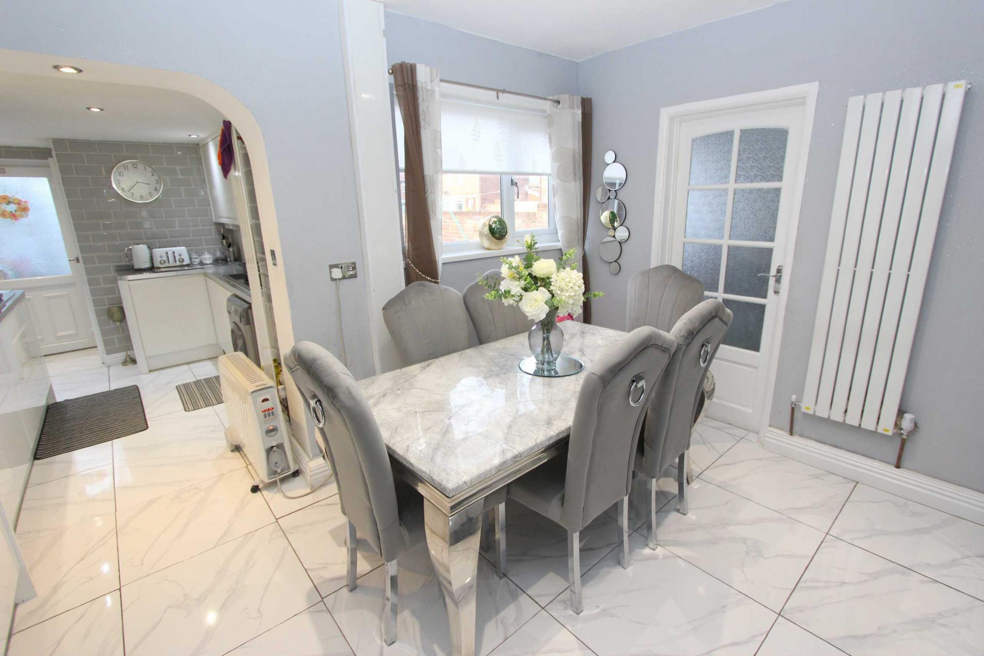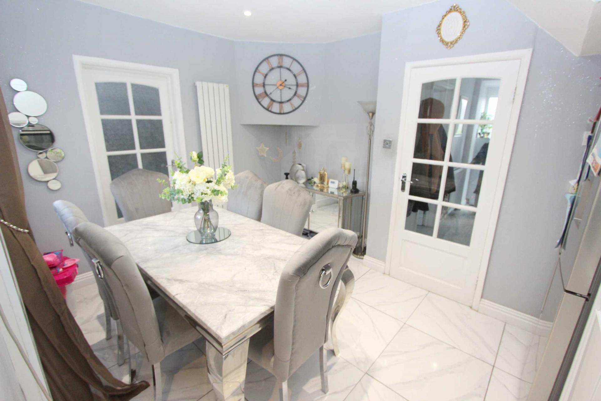 DINING ROOM 10'3" x 8'2" (3.12m x 2.5m). With space for a dining table and chairs, door to the kitchen, double glazed windows and doors to the rear leading to the rear garden.