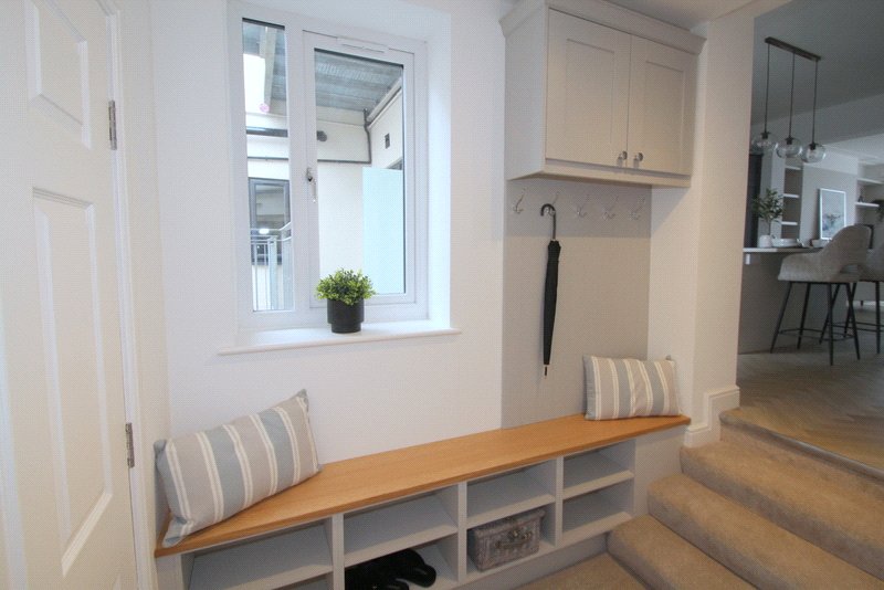Inner Hallway Radiator, built in cloaks area with hanging space and shoe storage.