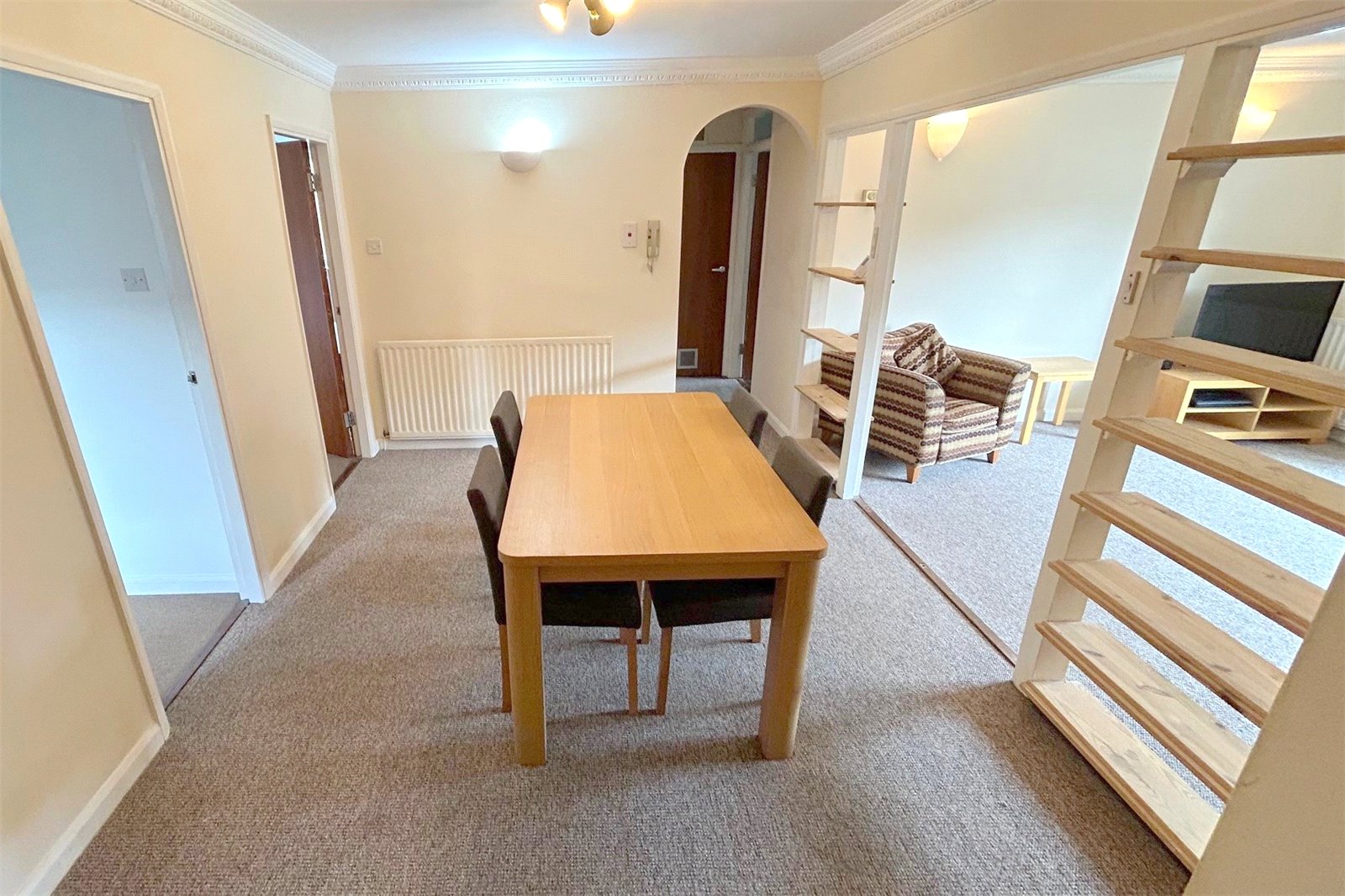 Hallway/Dining Room A spacious area with room for a dining table and chairs. Open through to the lounge. Doors lead to the two bedrooms and archway through to the inner hallway.