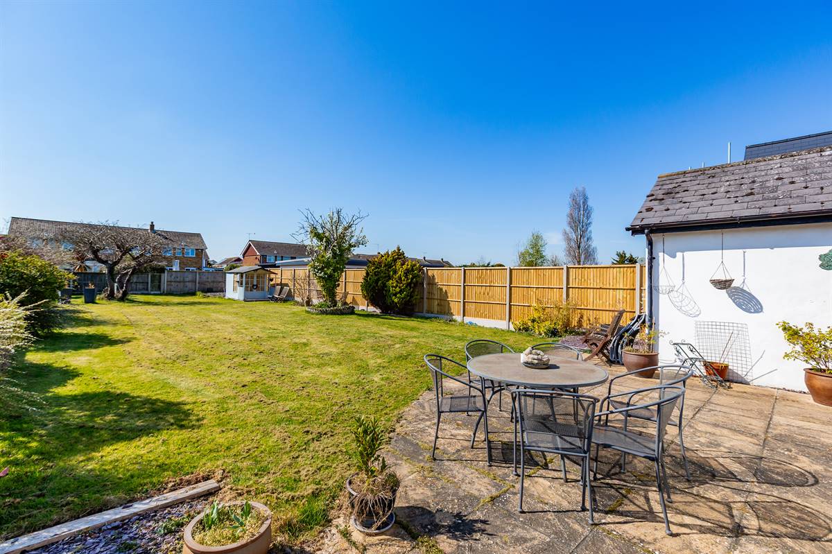 Mainly laid to lawn with flower beds, bushes and shrubs. Paved patio area. Gated pedestrian side access. Enclosed with fencing