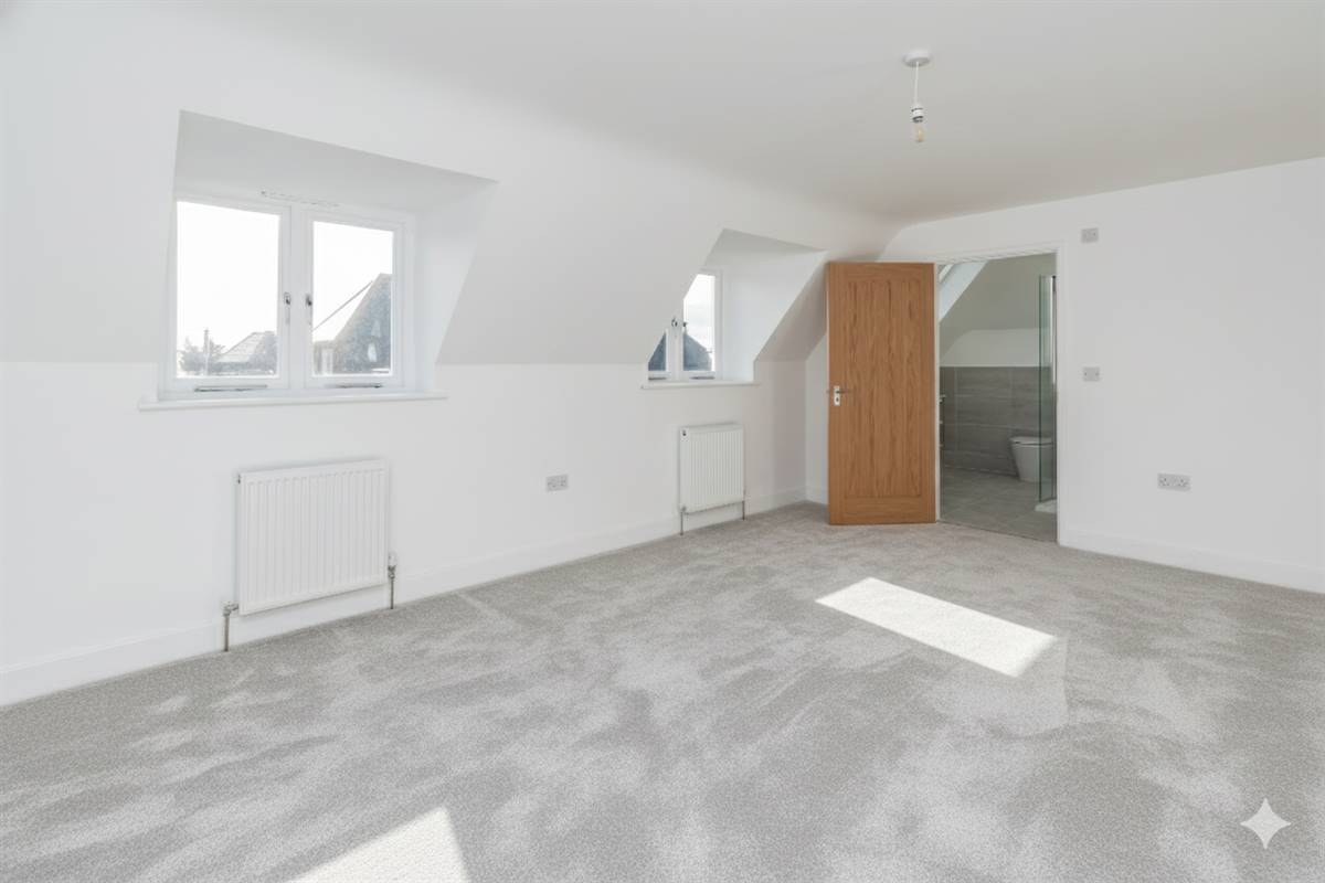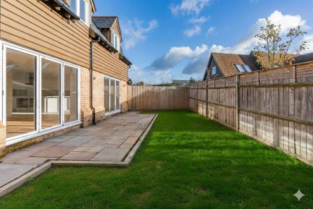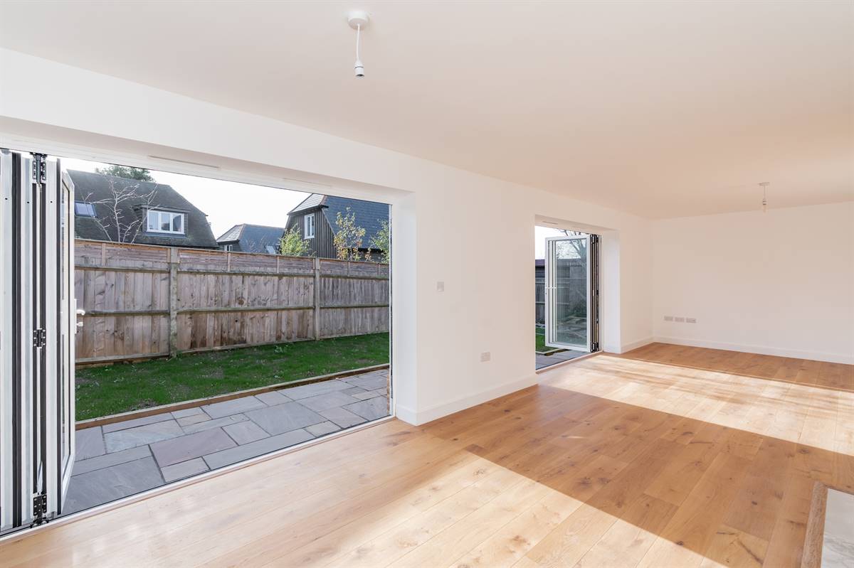 Located within an exclusive development close to Whitstable town centre, the home features a welcoming entrance hall leading to a WC. The main highlight is the expansive 30ft open-plan living area, which seamlessly integrates a kitchen with modern fitted appliances and features bi-folding doors that open directly onto the west-facing garden.