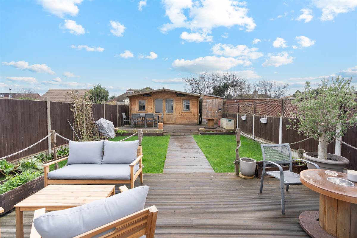 The first floor boasts two bedrooms offering flexibility for sleeping arrangements or home working. To the rear you will find a private, well maintained garden complete with a large summerhouse, perfect for hobbies, storage or a tranquil retreat along with two good size decked seating areas.