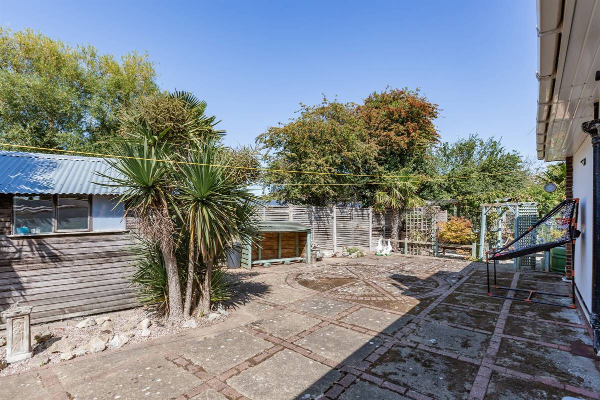 Mainly laid to paved patio area. Workshop. Gated pedestrian side access. Enclosed with fencing.