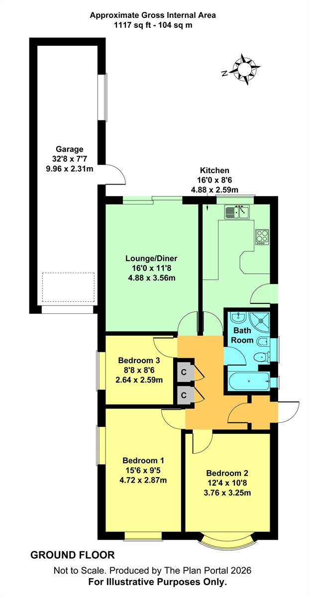 Bedroom 3 8' 8 x 8' 6 (2.65m x 2.44m)