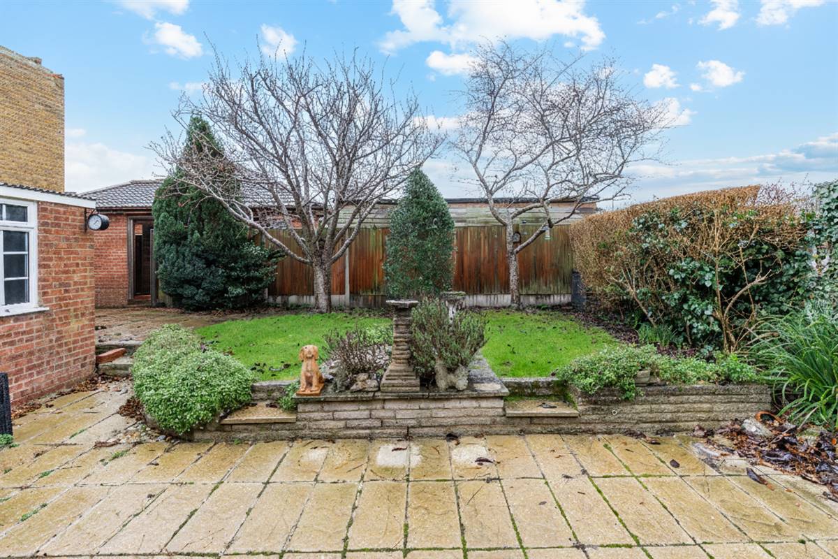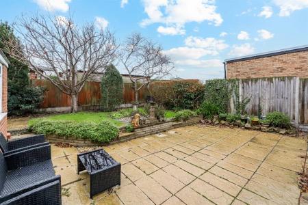 Mainly laid to lawn with flower beds, bushes and shrubs. Paved patio area. Gated pedestrian side access. Enclosed with fencing.