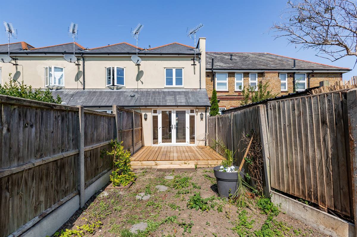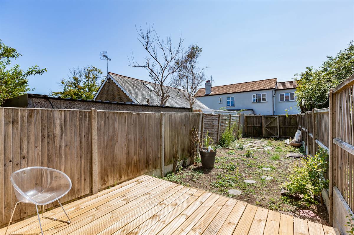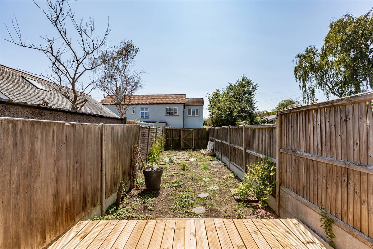 The garden is southerly facing. Decked seating area. Pedestrian rear access to parking area at rear. Enclosed with fencing.