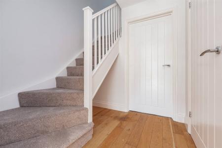 Understairs storage area. Thermostat control for central heating. Balustrade staircase leading to first floor. Engineered wood floor.