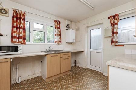 Matching range of wall and base units. Single drainer stainless steel sink unit. Work surfaces. Partially tiled walls. Electric and gas cooker points. Plumbing for washing machine. Wall mounted gas boiler supplying hot water and central heating. Window to rear overlooking garden. Door to side providing access to rear garden.
