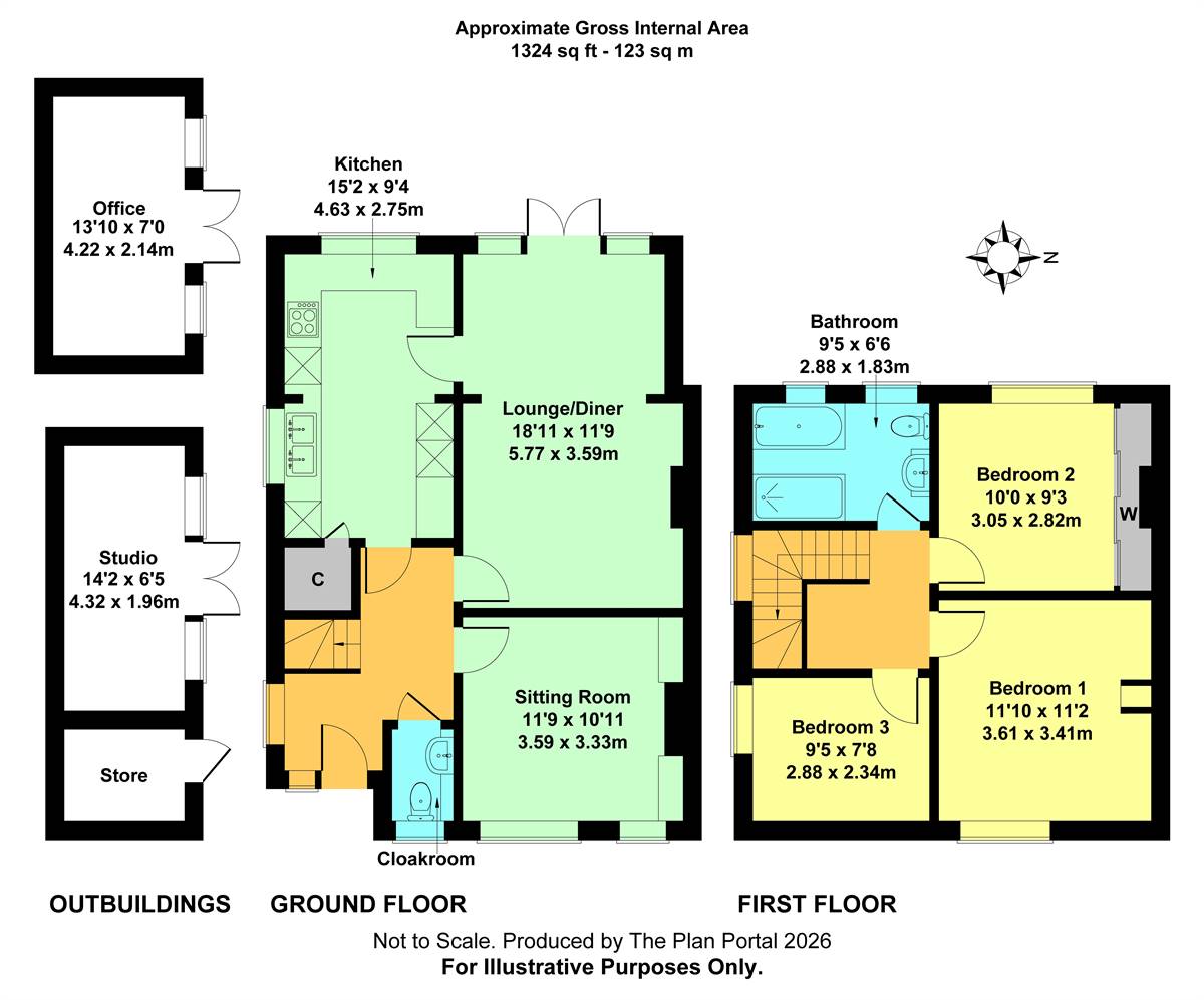 The expansive rear garden is a standout feature of this home housing two fully insulated studios and a dedicated store. These versatile spaces are perfect for a home office or creative studio. Additionally, the property includes a ground-floor cloakroom, ample storage throughout and off-road parking to the front.