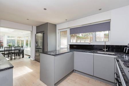 The Kitchen is planned with a matching range of wall and base units arranged on three walls. Undermount stainless steel sink unit. Work surfaces with drainer grooves. Gas cooker point. Integrated dishwasher and washing machine. Wall mounted combination gas boiler supplying hot water and central heating. Window to side. Wood flooring. Door providing access to rear garden.