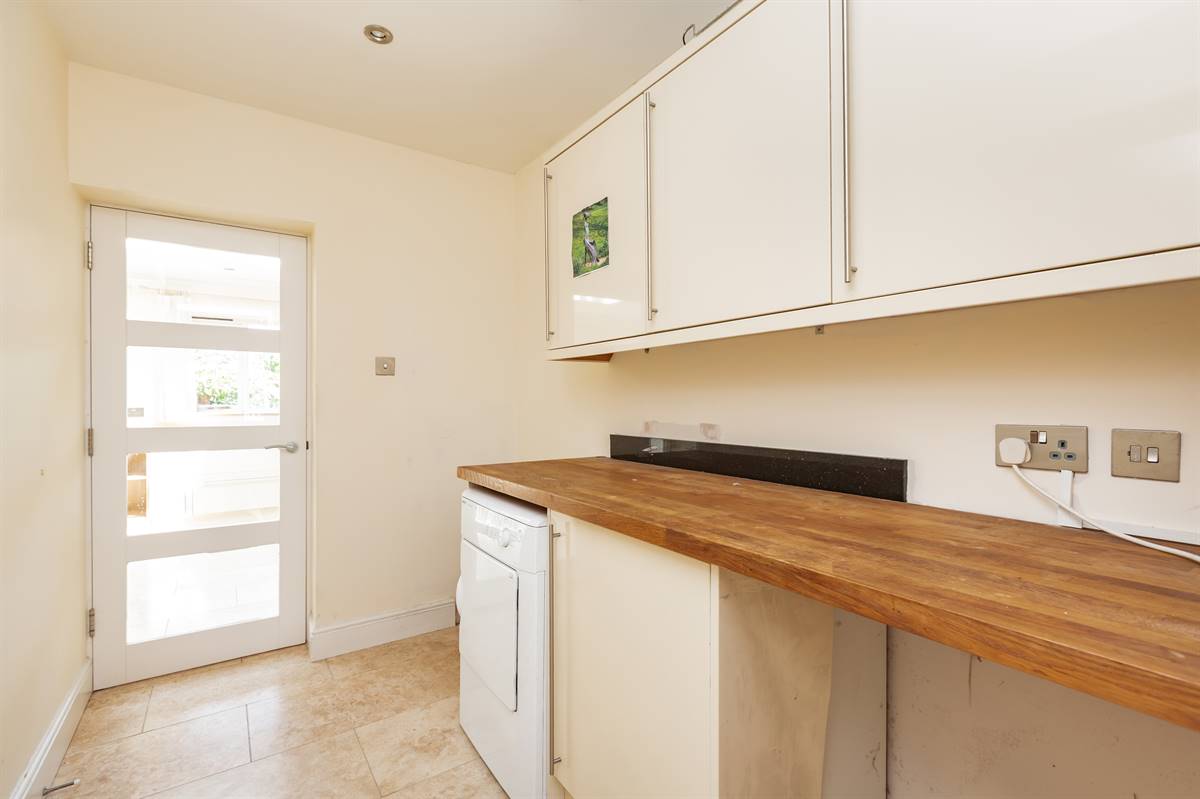 The kitchen is planned with a matching range of wall and base units arranged on three walls. Inset stainless steel 1 ½ bowl sink unit. Gas cooker point with stainless steel extractor cooker hood above. Integrated dishwasher. Wall mounted combination Gas boiler supplying hot water and central heating. Window to side and rear. Radiator. Underfloor heating. Tiled flooring. Bi-folding doors providing access to the rear garden.