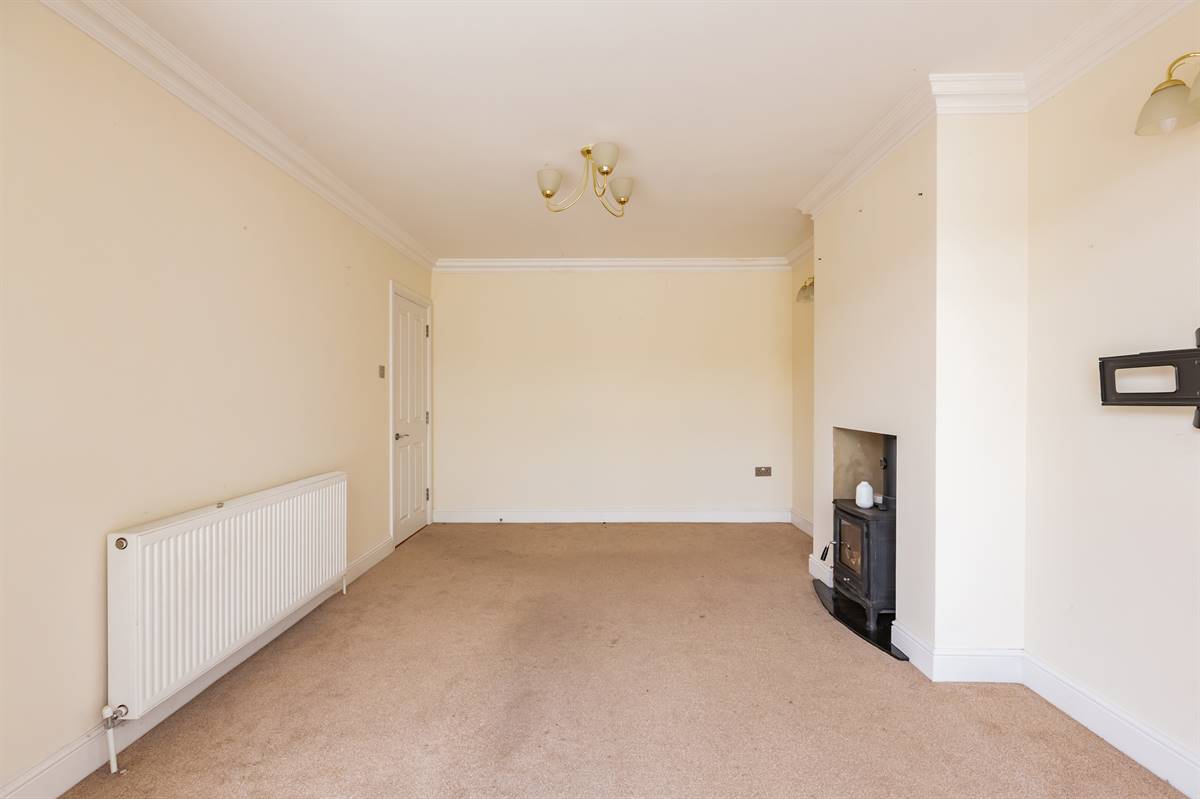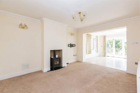 Feature fireplace housing a log burning stove. Radiator. Opening to kitchen/diner.