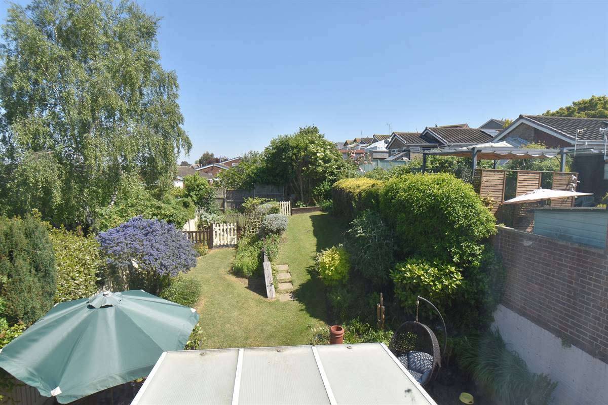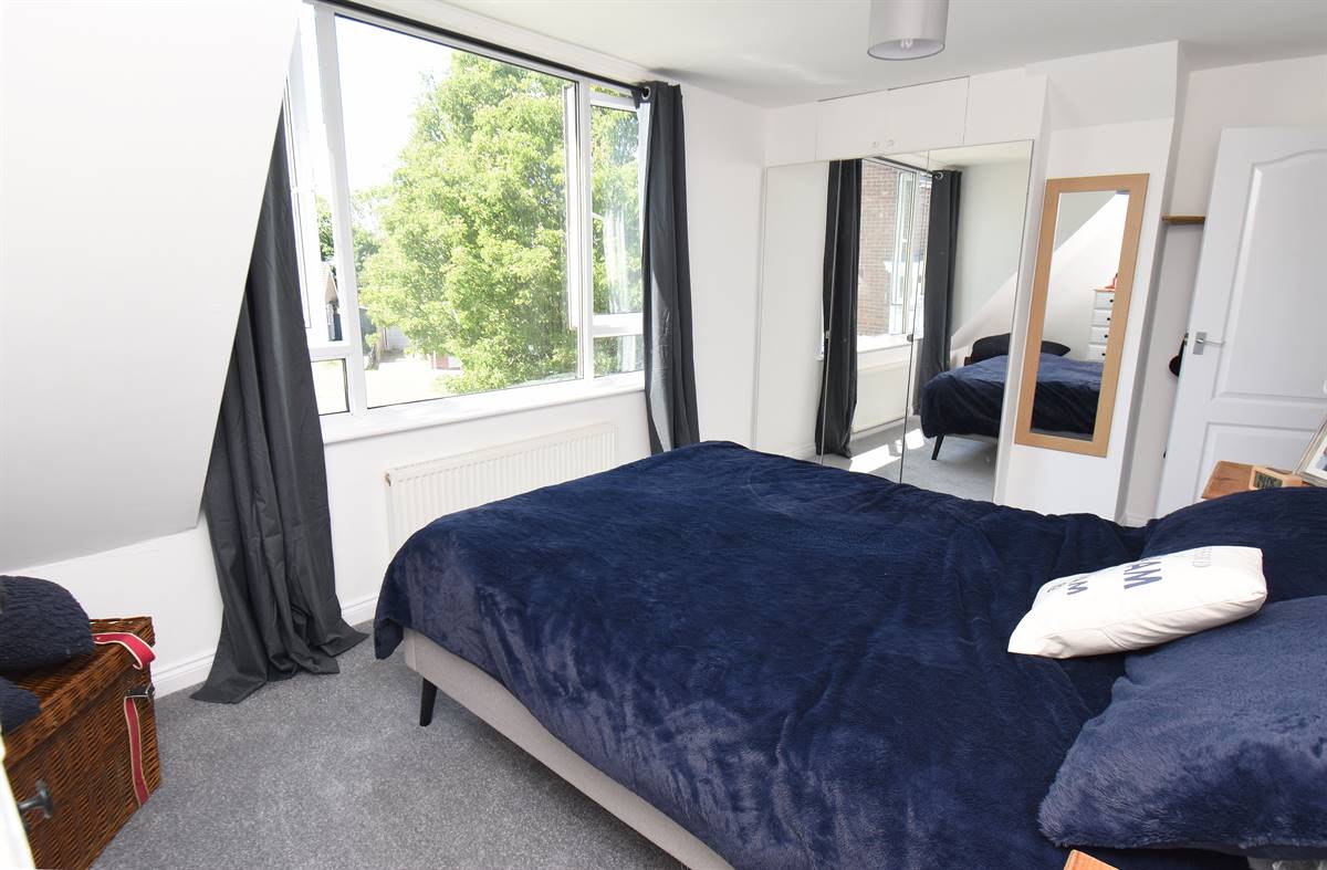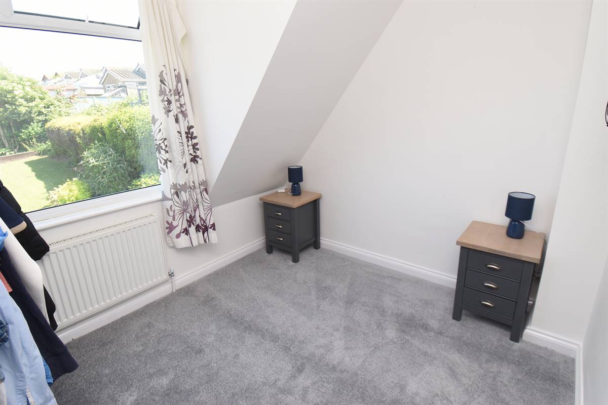 Window to front overlooking garden and sea glimpse. Fitted triple wardrobe with shelves and hanging space. Radiator.