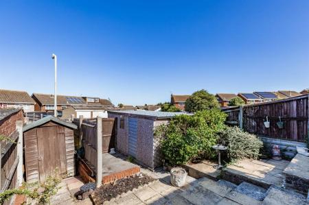 Tiered garden mainly laid to paving with a variety of shrubs and bushes. Large paved patio area. Timber shed. Outside lighting. Gated pedestrian side and rear access. Enclosed fencing.