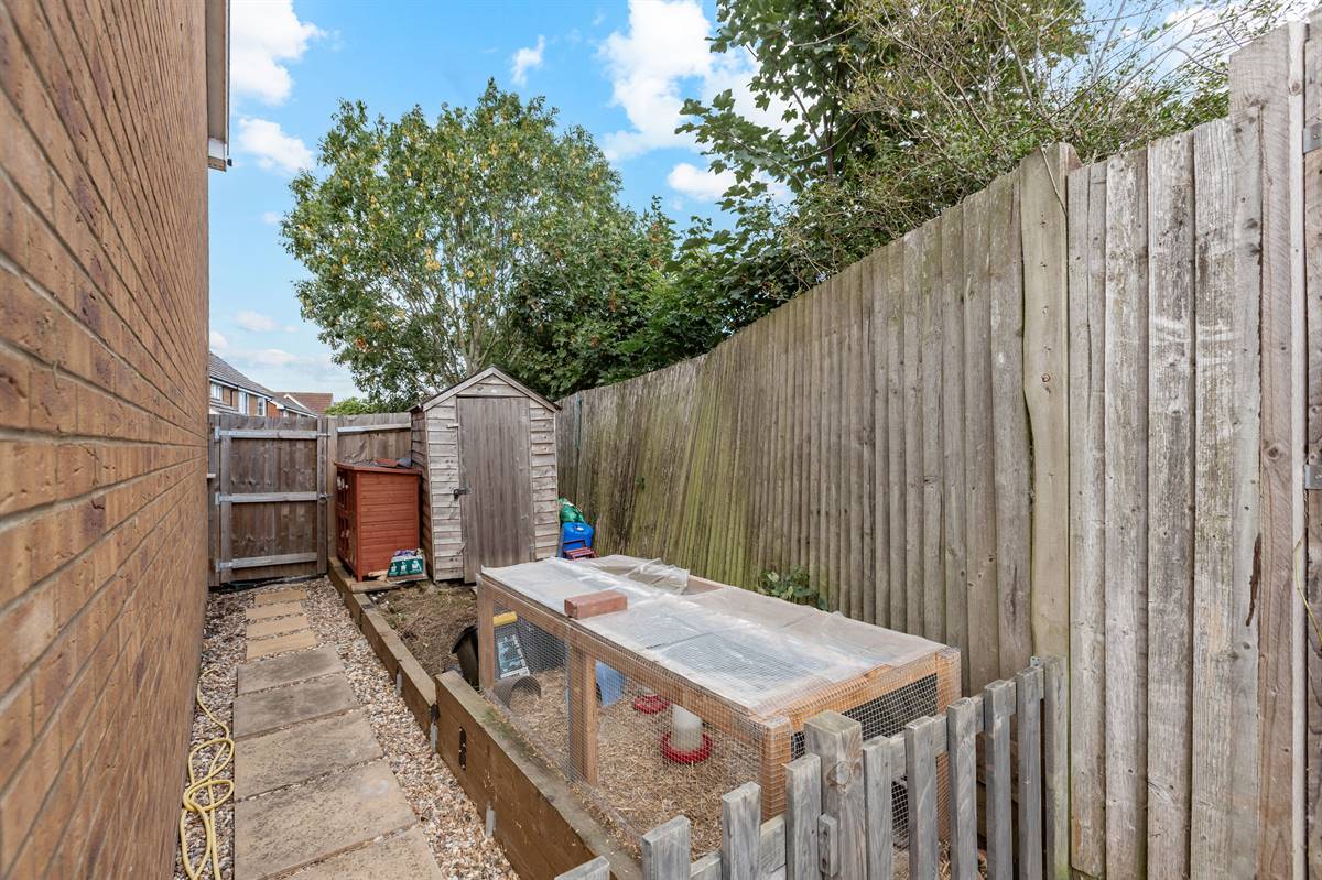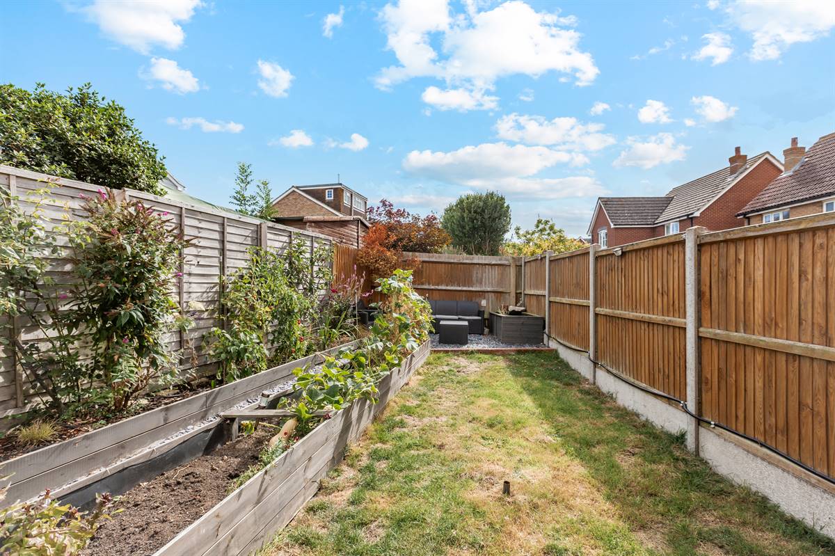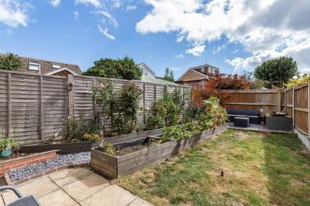Mainly laid to lawn with flower beds, bushes and shrubs. Paved patio area. Gated pedestrian side access. Enclosed with fencing.