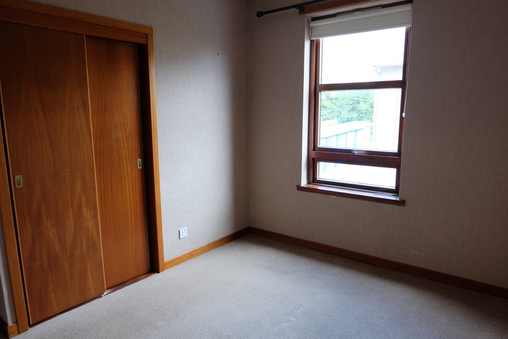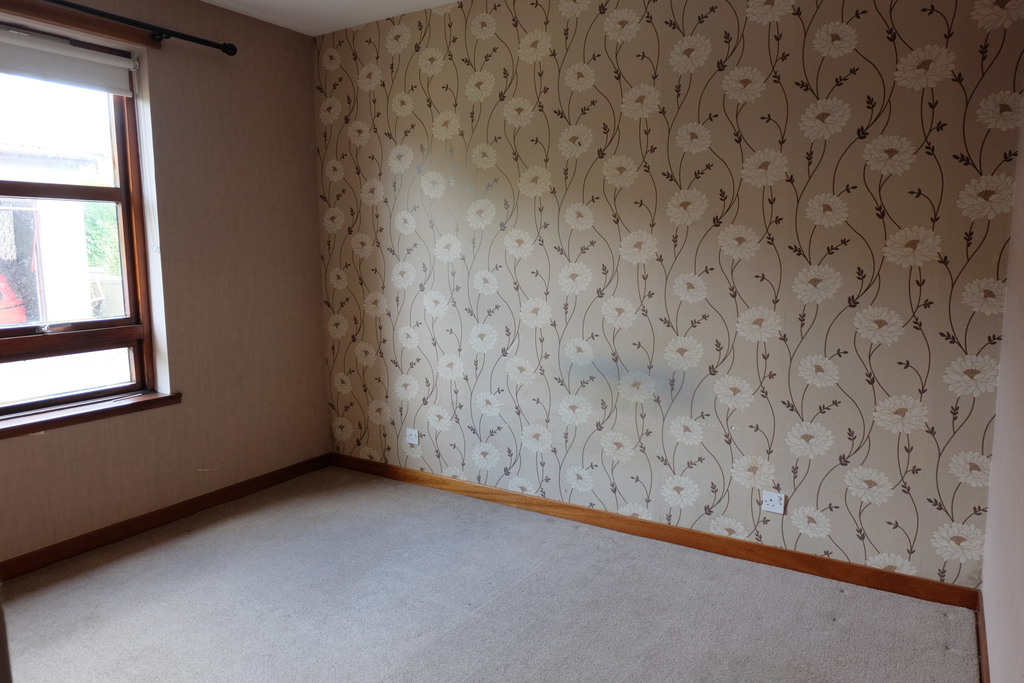 This neutrally decorated room has a feature papered wall and benefits from a fitted carpet. There are built in wardrobes with hanging and shelf space. It also benefits from a central heating radiator, electrical sockets and a pendant light fitting. There is also a window to the rear elevation.
